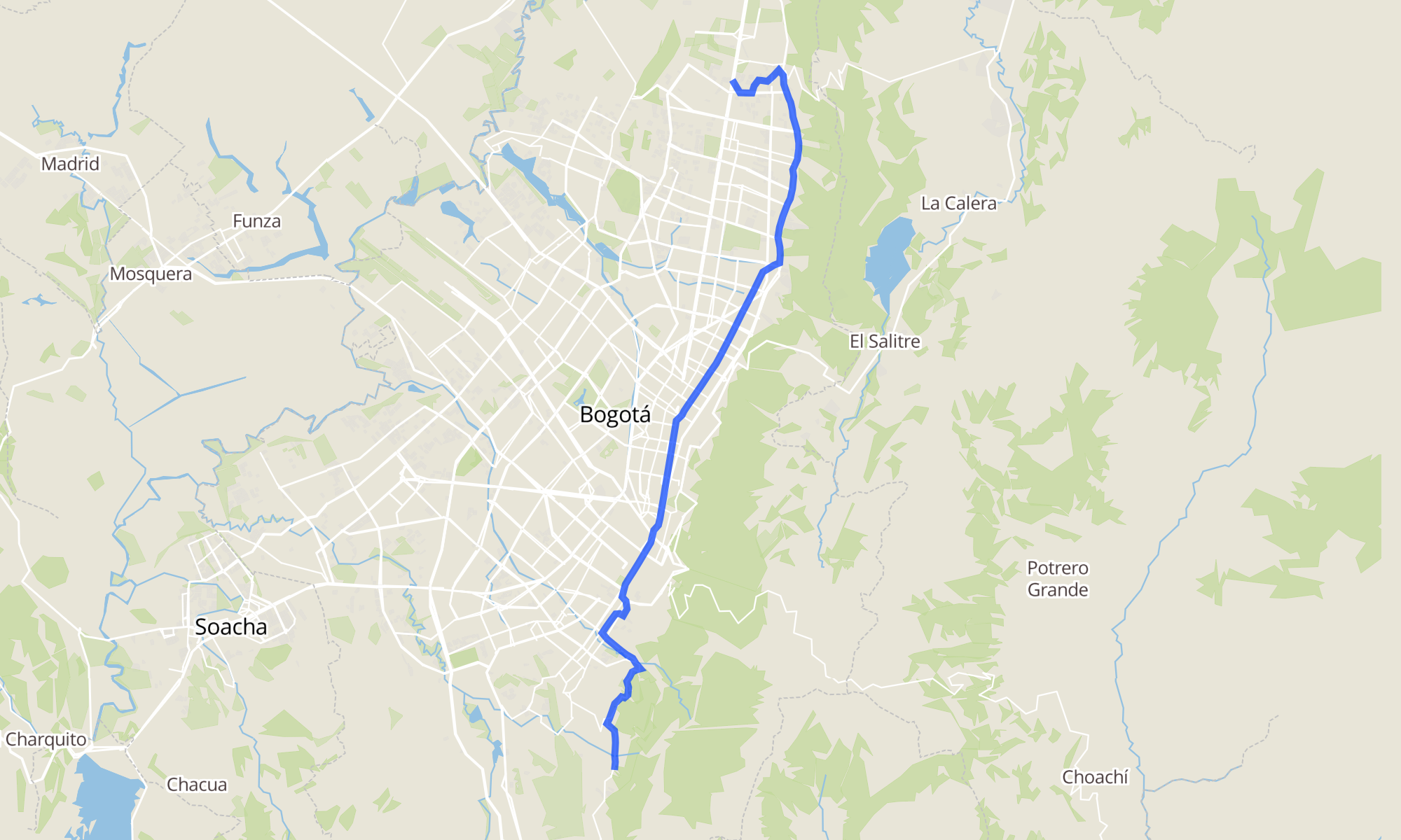 | Centro Comercial Santafé (Auto Norte - Cl 187) (A) | Br. El Pinar (Av. Circunvalar - Cl 48 Sur) |