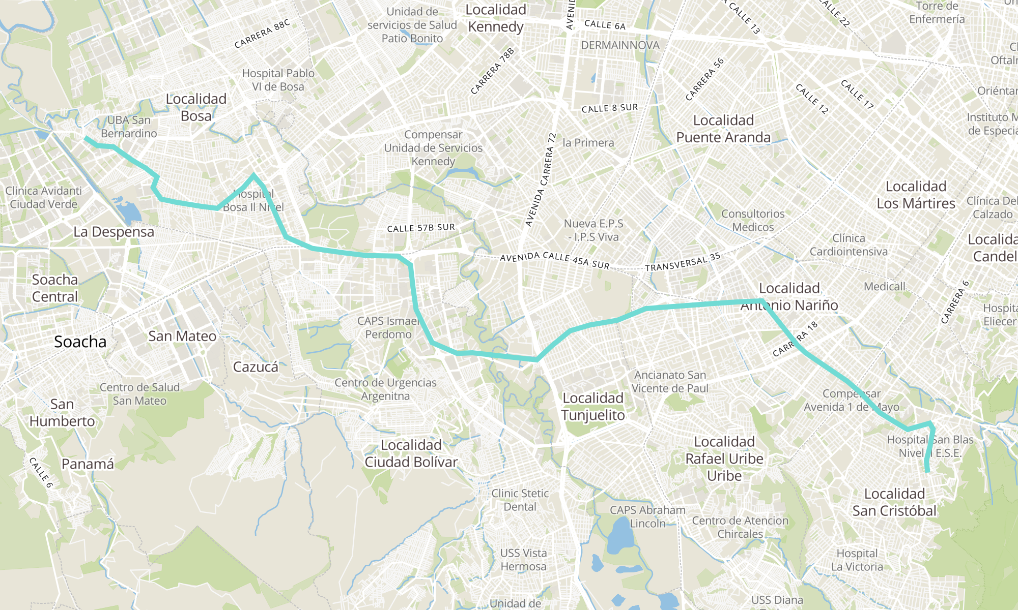 | Br. El Jardín (Kr 80i - Cl 87b Sur) (A) | Ied José Acevedo Y Gómez (Tv 4 Este - Dg 28 Sur) |