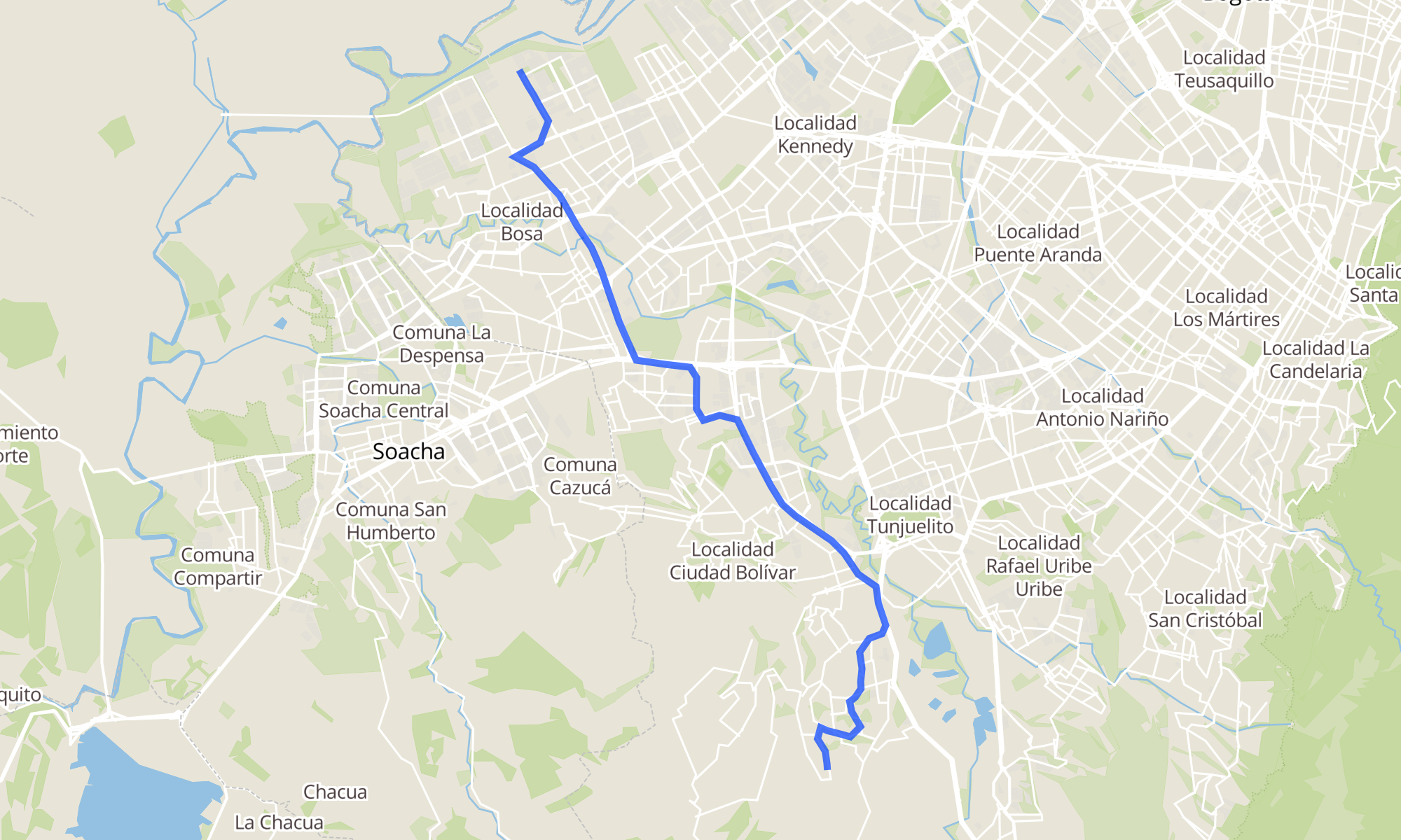 | Br. Cañaveralejo (Cl 56 F Sur - Kr 102a) | Br. Arabia (Kr 18g - Cl 81g Sur) |