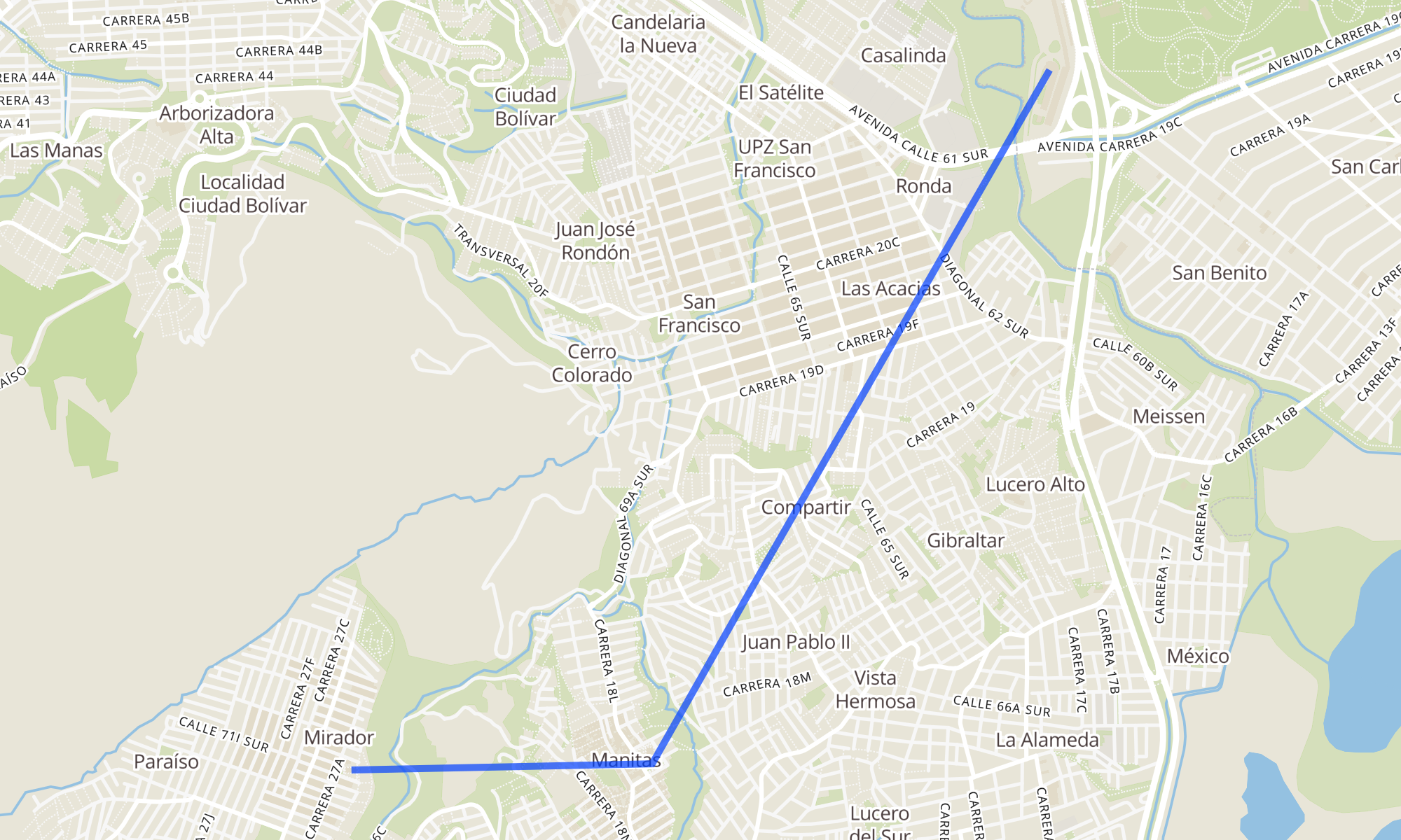 Sentido: Portal Del Tunal [Transmicable] ‎→ Mirador Del Paraíso [Transmicable] (4 paradas)