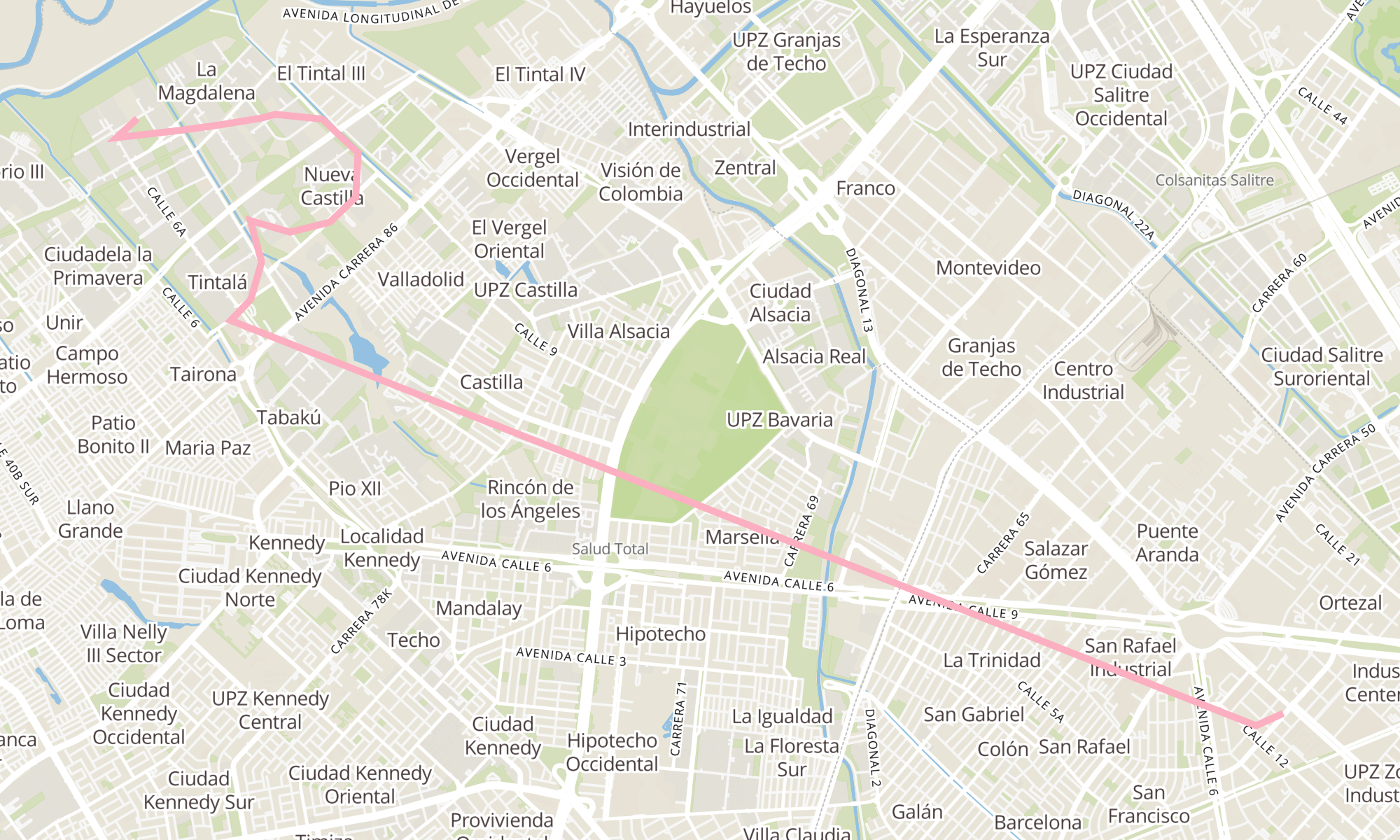 | Br. Gorgonzola (Kr 43 - Cl 12b) | Parque Zonal San Ignacio (Kr 94 Bis - Cl 6a) |