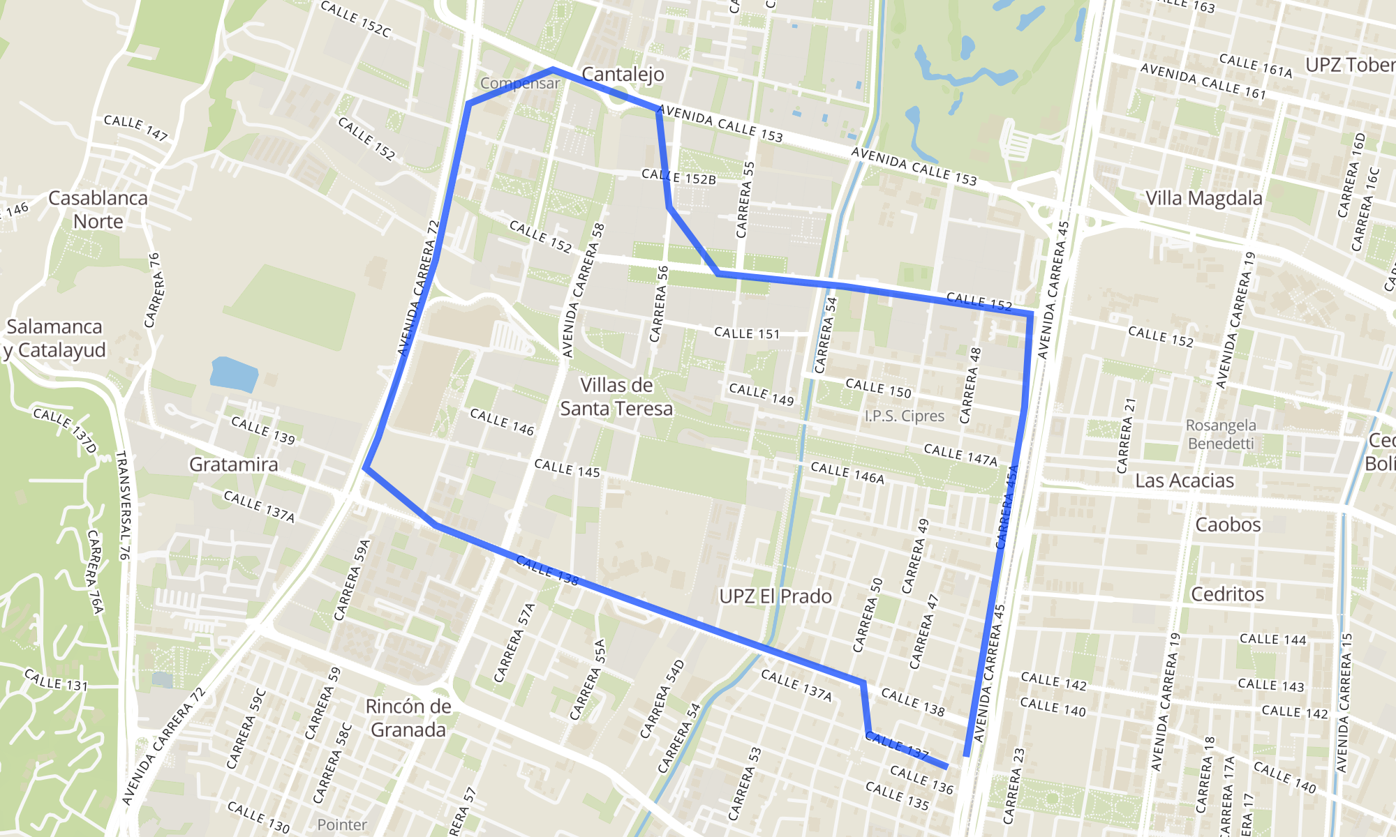 | Br. San José Del Prado (Kr 45a - Cl 137) | Estación Alcalá - Colegio Santo Tomás Dominicos (Auto Norte - Cl 136) |