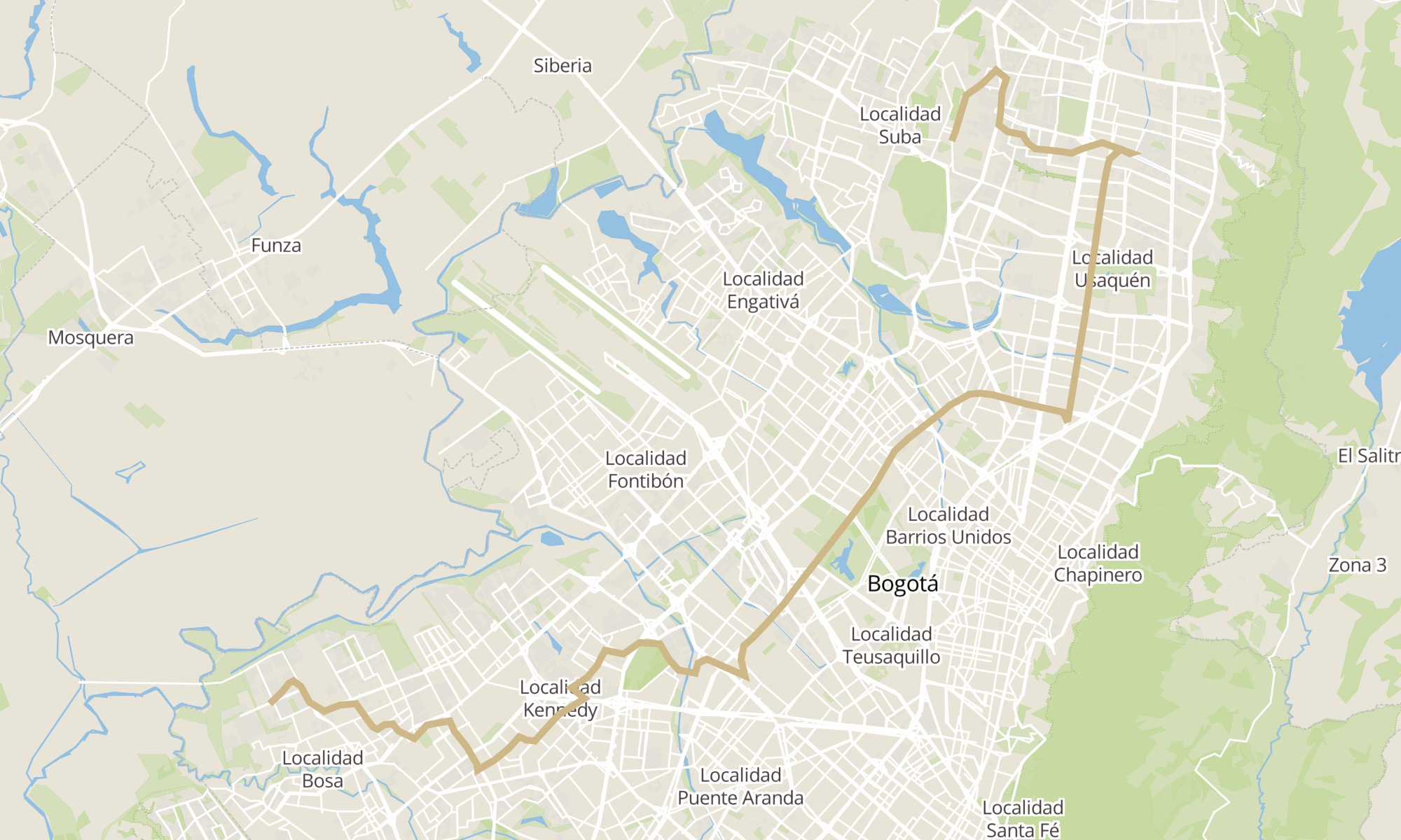 Sentido: Br. San Bernardino XIX (Kr 95a - Cl 75a Sur) (C) ‎→ Br. Casa Blanca I (Tv 77 - Cl 146a) (B) (107 paradas)