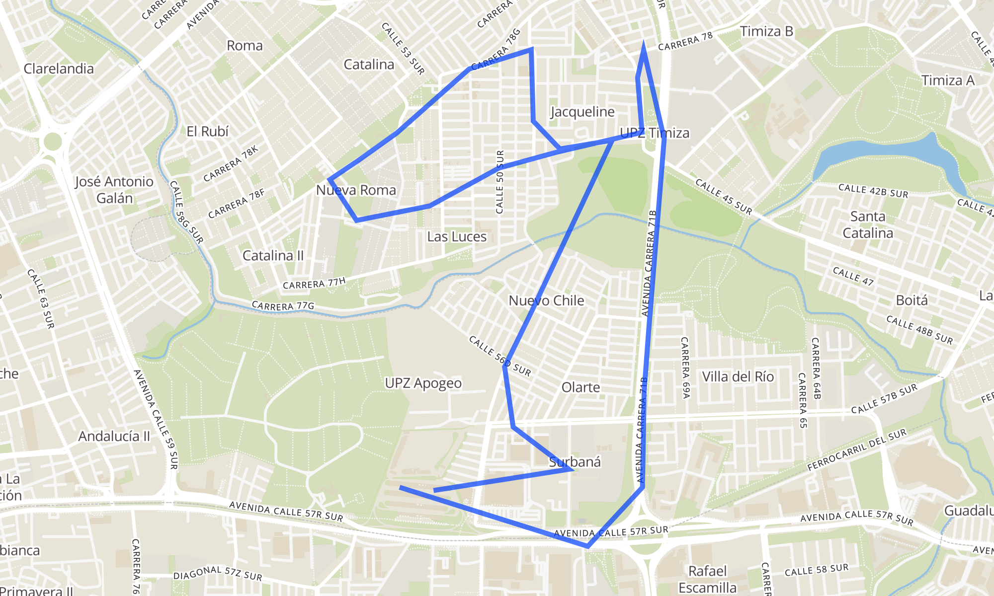 Recorrido de la línea TC14: Nueva Roma ⇄ Portal Sur