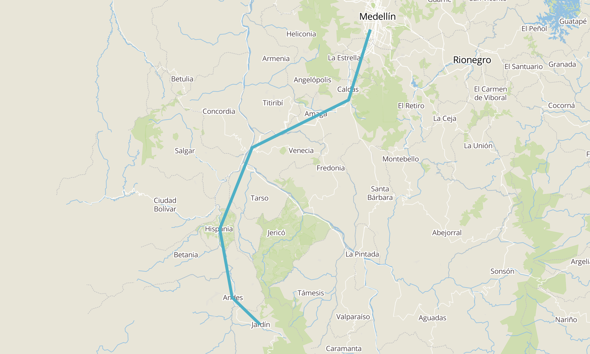 Recorrido de la línea Medellín a Jardín: Jardín