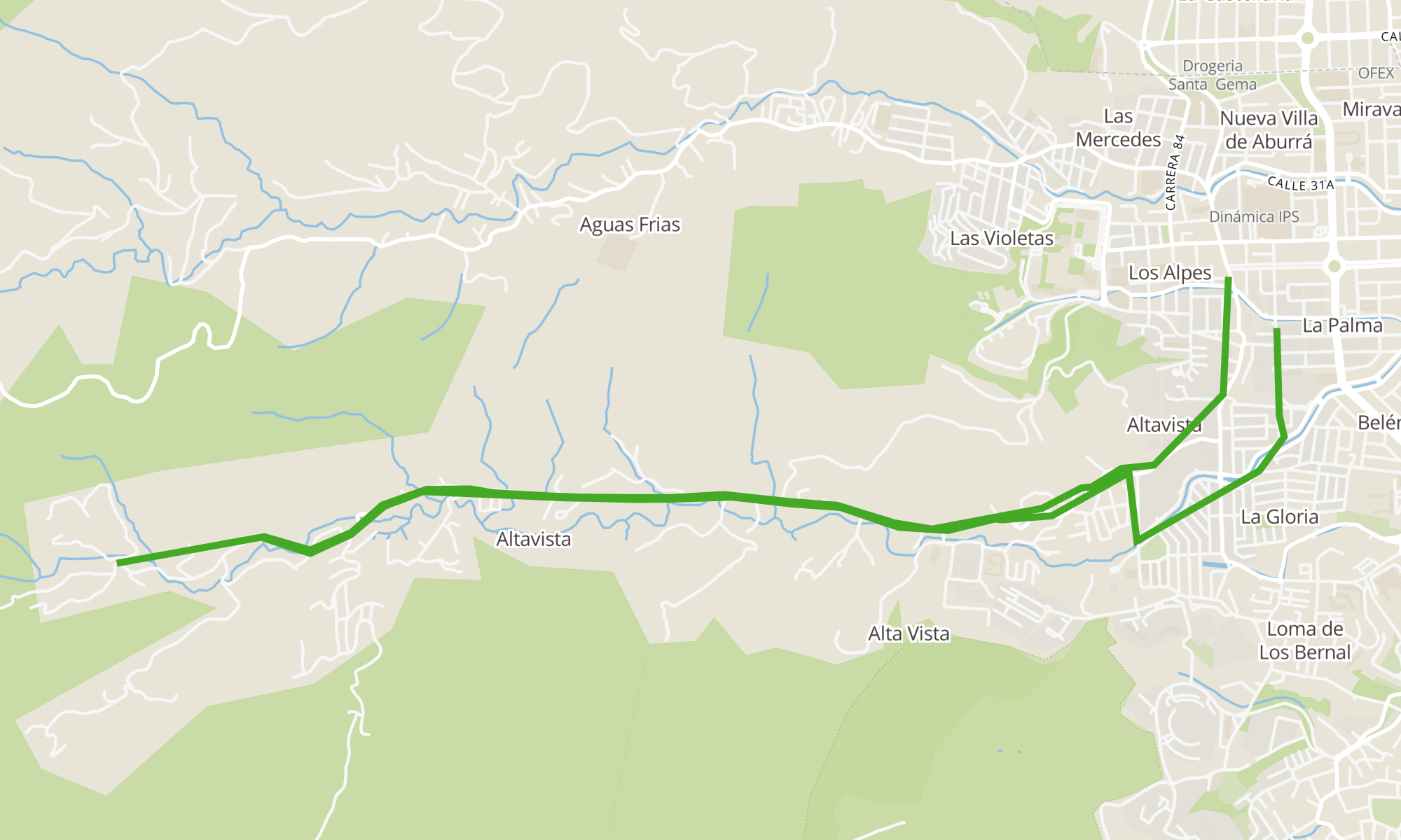| Estación Los Alpes (Kr 83 - Cl 30, Medellín) | Edificio Bora Bora (Kr 82a - Cl 27a, Medellín) |