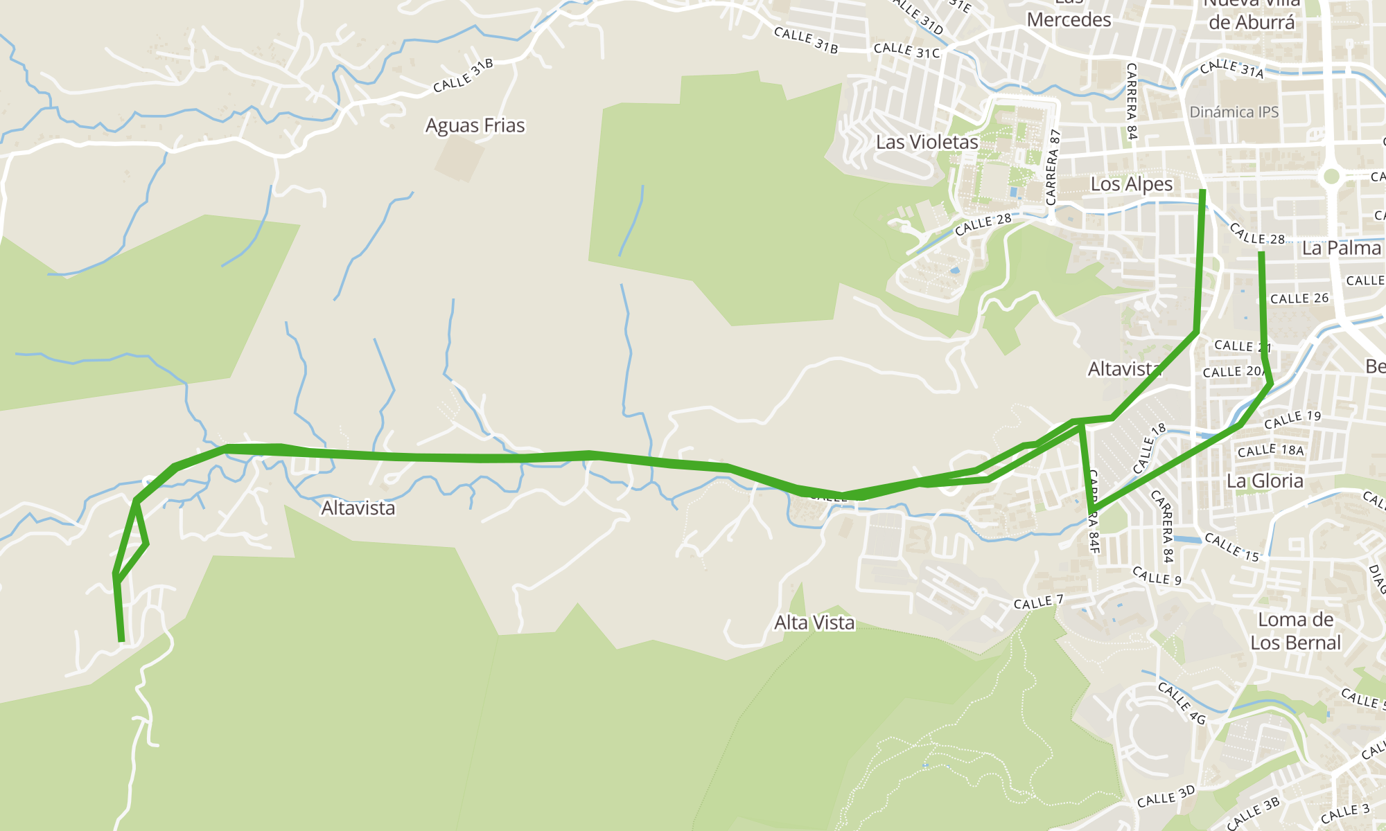 | Estación Los Alpes (Kr 83 - Cl 30, Medellín) | Edificio Bora Bora (Kr 82a - Cl 27a, Medellín) |