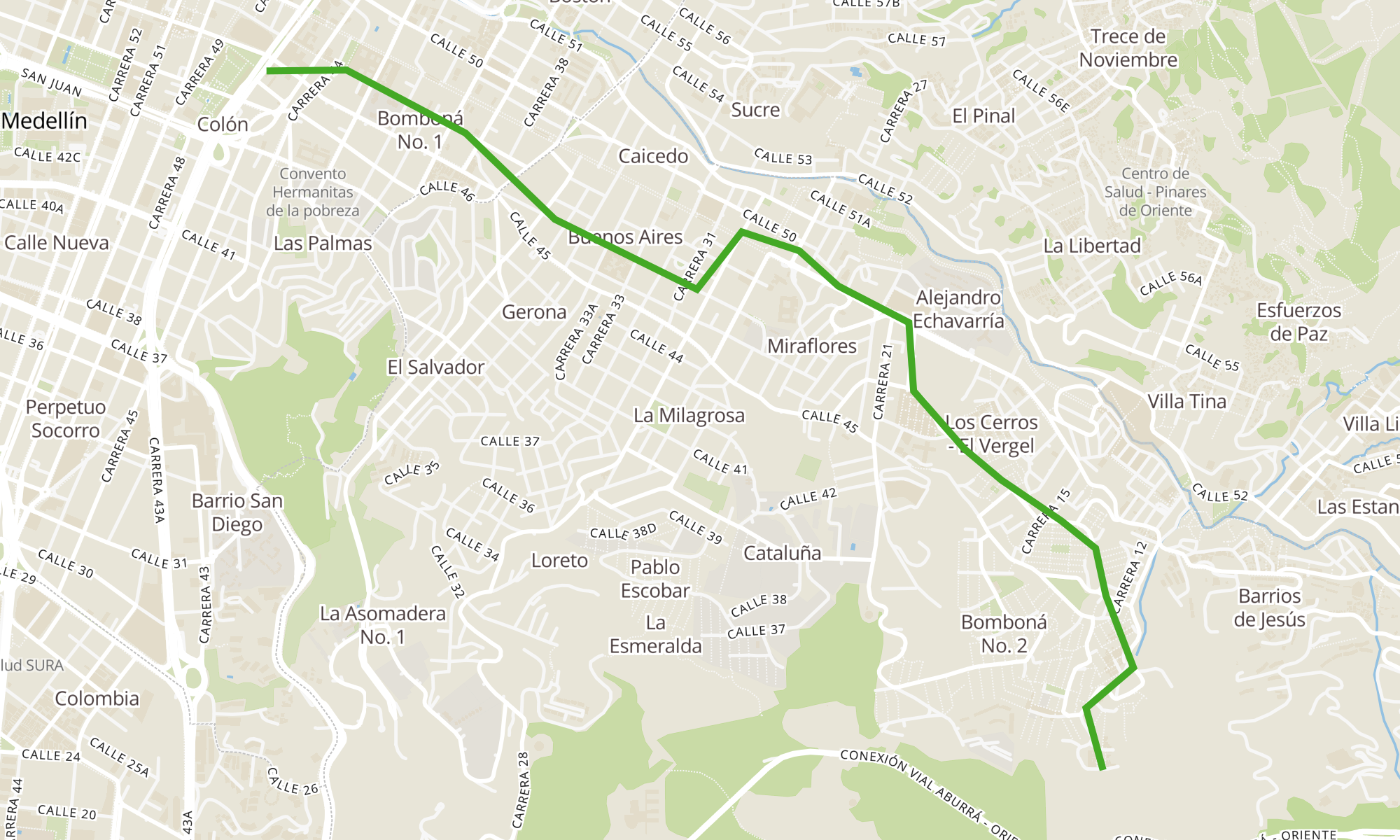 | Br. Caunces De Oriente (Cl 43d - Cr 8, Medellín) | Estación De Policía De San Antonio (Cr 46 - Cl 46, Medellín) |