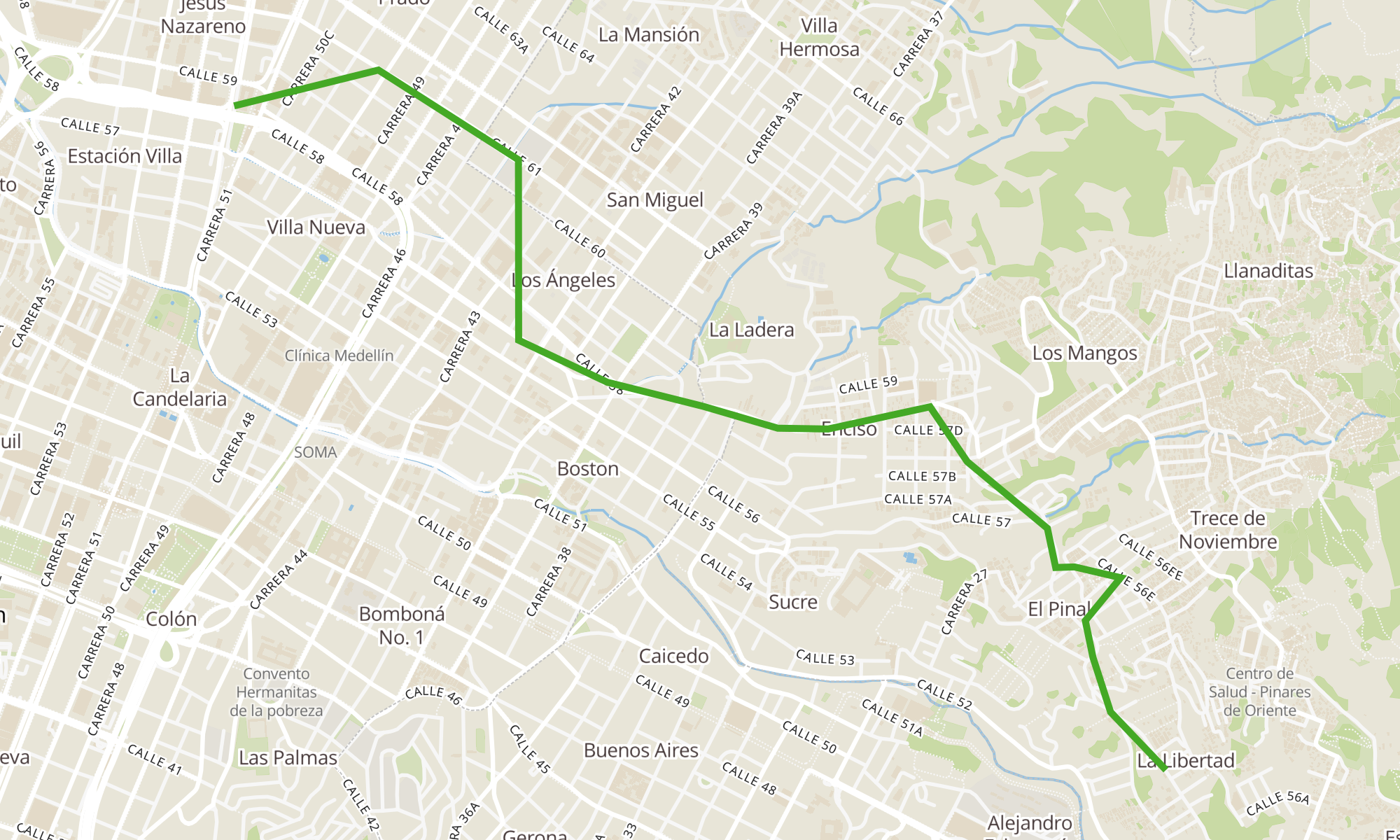 | Estación Prado (Cr 51d - Cl 58, Medellín) | Br. La Libertad (Cl 56a - Cr 20a, Medellín) |