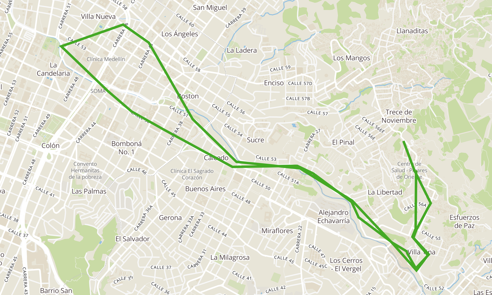 | Uva Sol De Oriente (Cr 23 - Cl 56h, Medellín) | Br. Villatina (Cr 17b - Cl 56e, Medellín) |