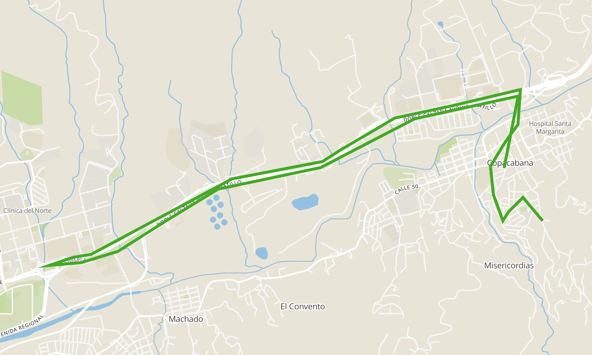 | Carrera 49a, Copacabana Piscina Olímpica | Carrera 51, Parque Principal Copacabana |