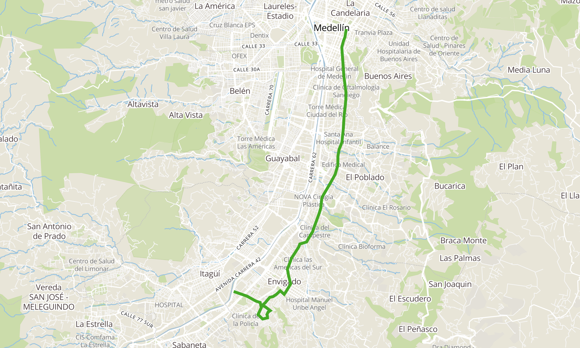 ¿A qué hora pasa? Descarga la app desde aquí para conocer cuándo viene el recorrido Norte-Sur: San Antonio-San Diego-Av El Poblado-La 10-La Frontera-Envigado-Guanteros-El Dorado-El Trianon-La Paz-Av Regio de la línea M 36A, su frecuencia y horarios en tiempo real gracias a la comunidad de usuarios.