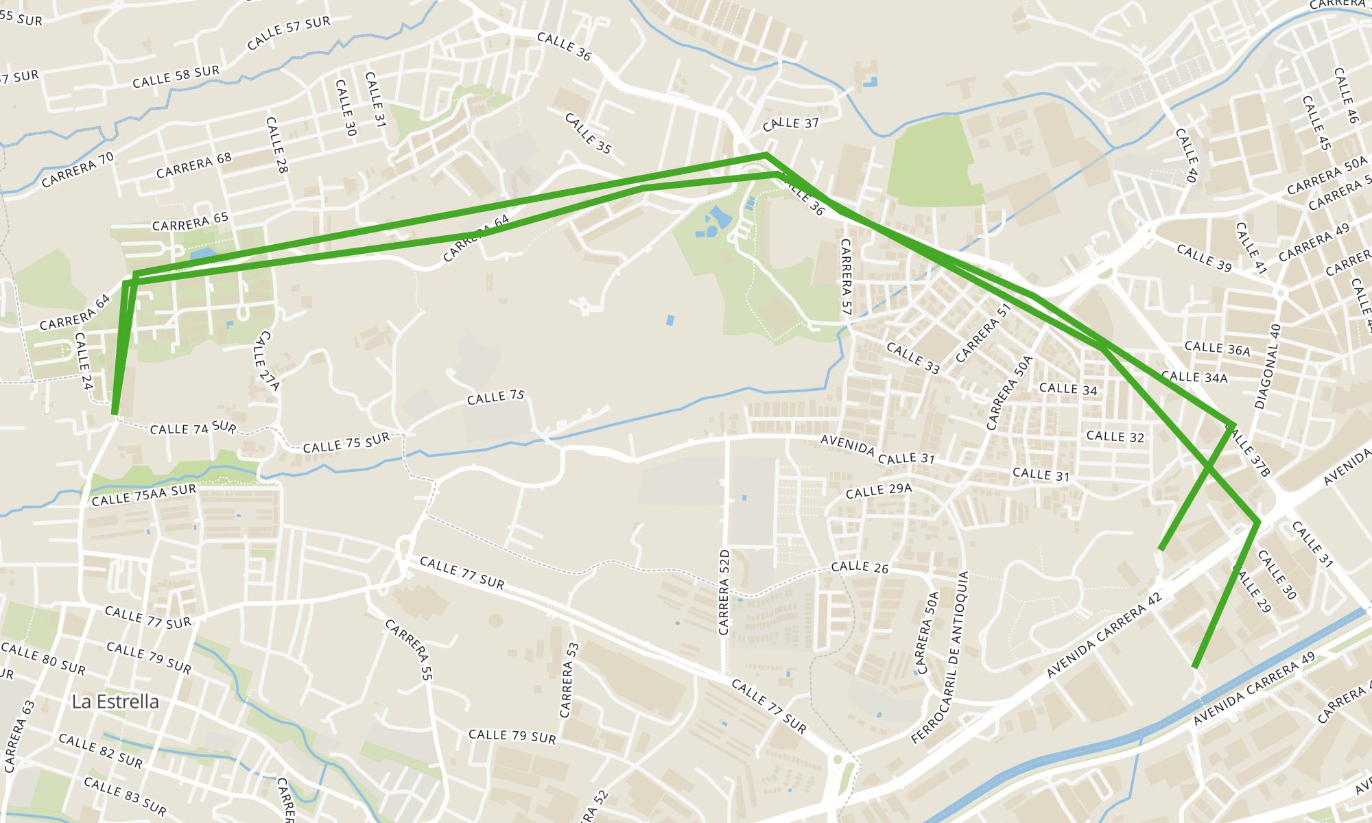 | Diagonal 43, 28-51 | Calle 27, Estación Sabaneta Buses |