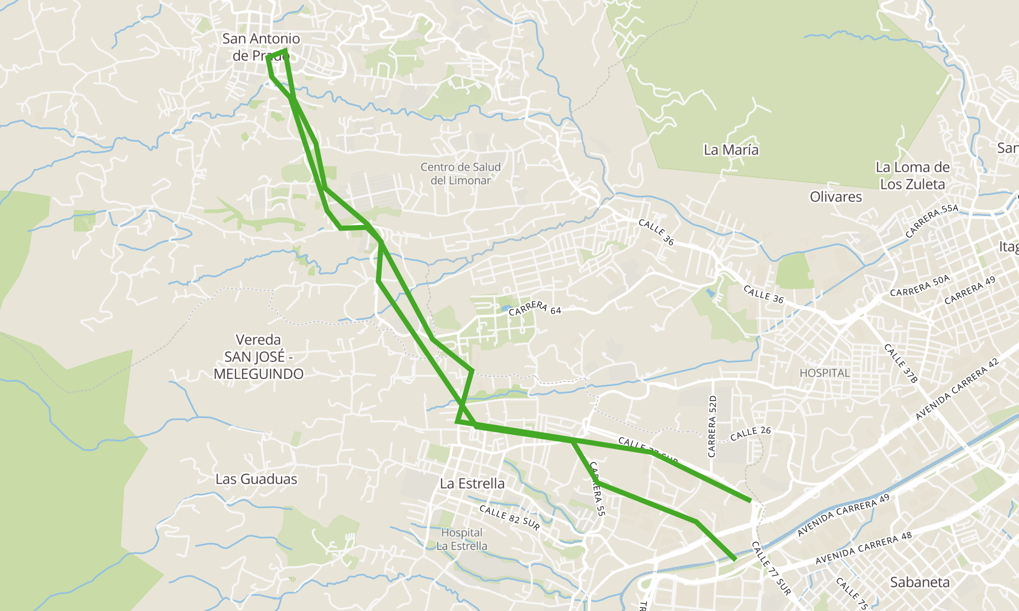 Recorrido de la línea 807SAP: Est Estrella-La Ferrería-Triana-Urb Prados Del Campo-Uva El Paraiso-San Antonio De Prado (Circular)