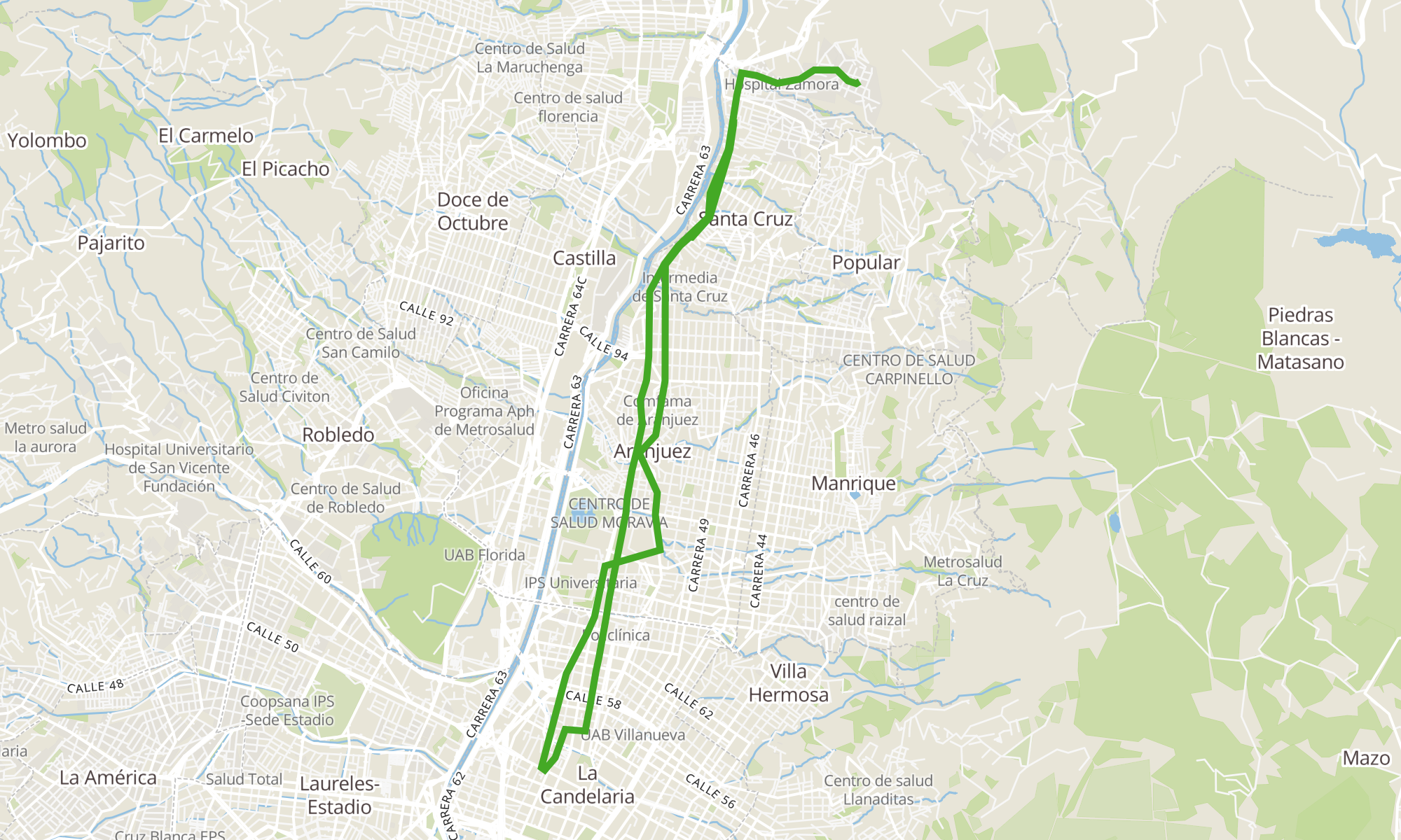 | Parroquia Santa Rita (Cr 40a - Cl 21c, Bello) | Parque La Frontera (Cr 52 - Cl 117, Medellín) |