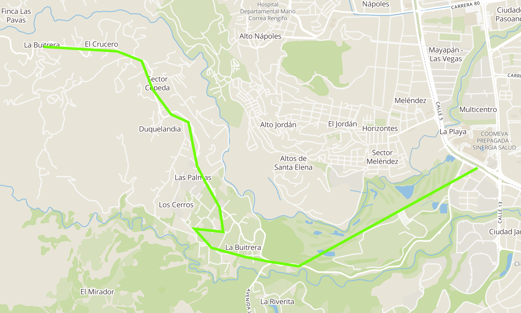 Recorrido de la línea A19B: Via a la Buitrera Tienda Inicio de ruta-Kr 100 ent