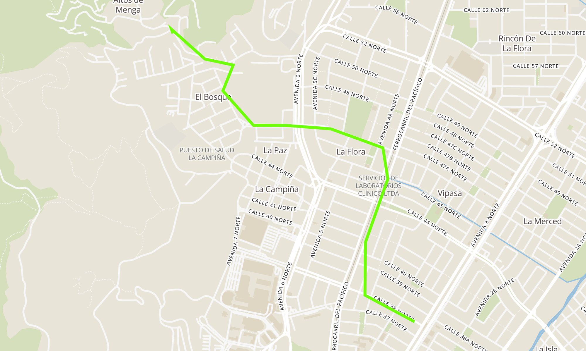 Recorrido de la línea A24: Cl 38N entre Av 3 y 3CN-Av 9N Con Cl 56