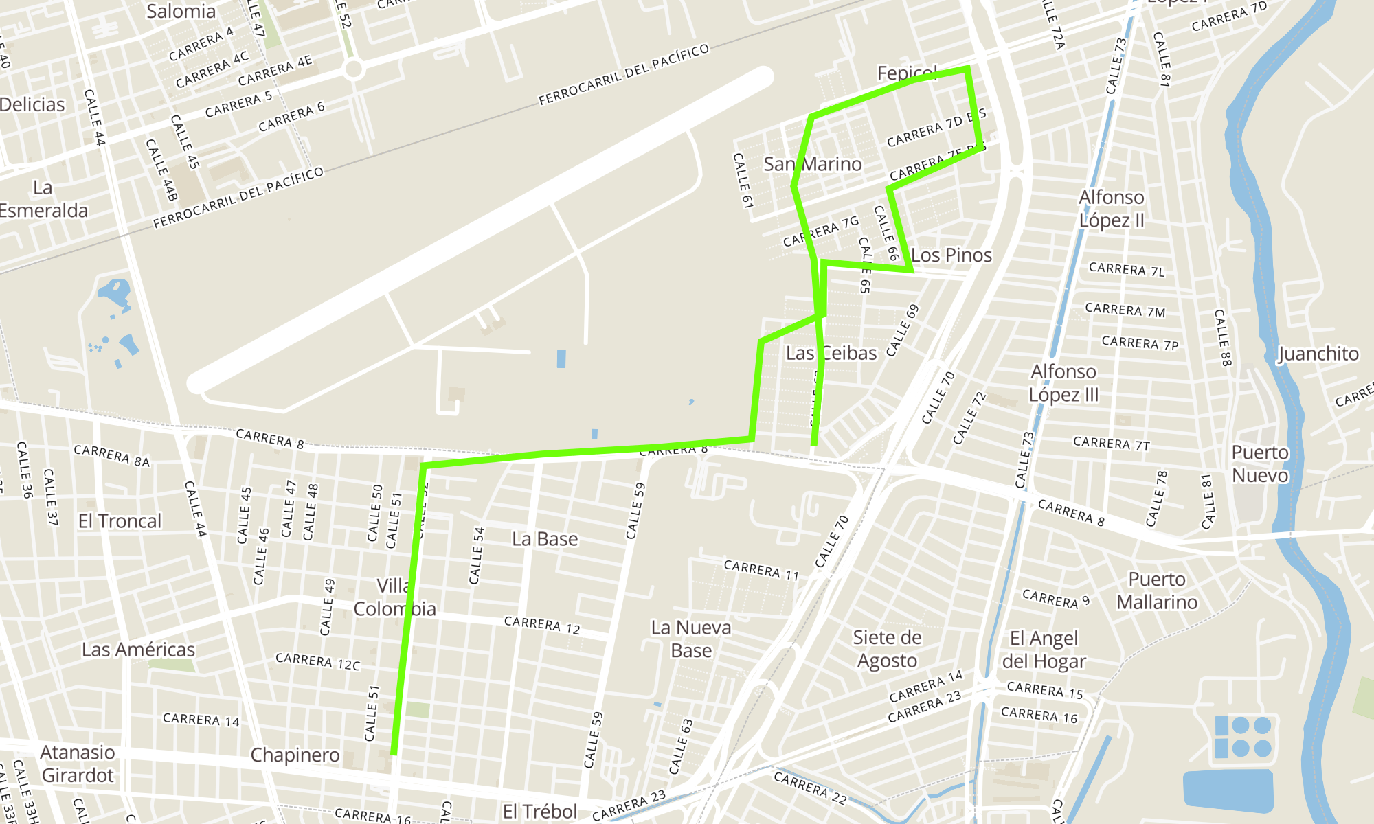 Recorrido de la línea A45B: Cl 63 entre Kr 8 y 7VBis-Cl 52 entre Kr 14 y 15