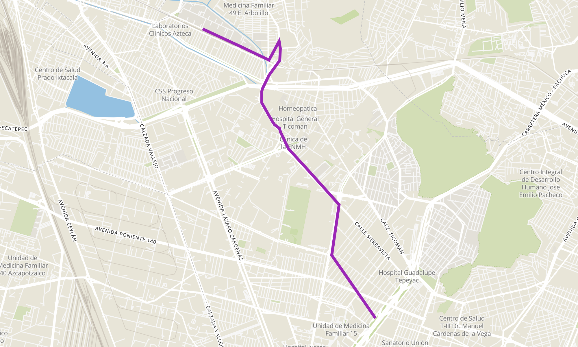 Recorrido de la línea Z1: 7.1 18 de Marzo-Acueducto