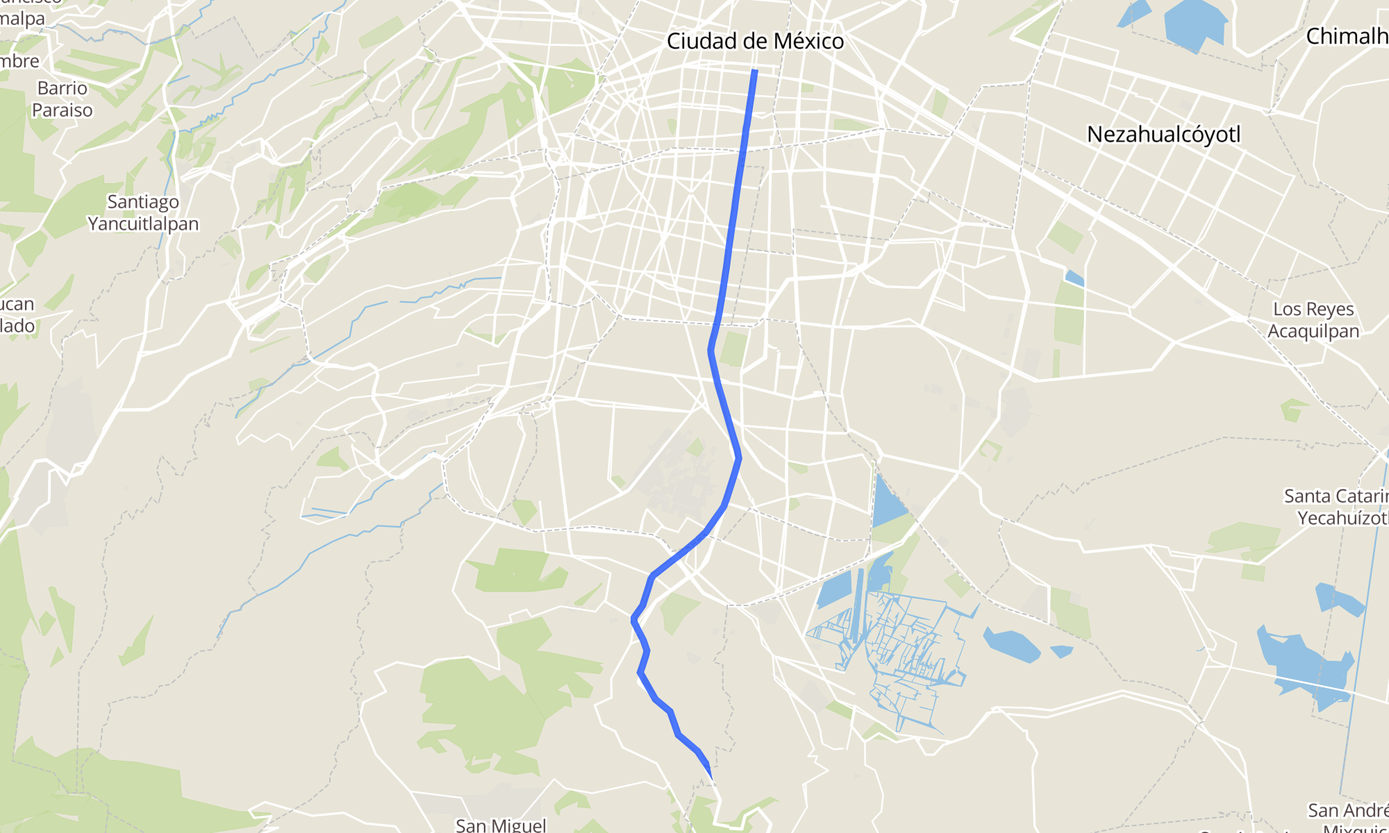 | Base Nezahulacoyotl - José María Pino Suárez | Base Carretera México-Cuernavaca - Caseta de Cobro |