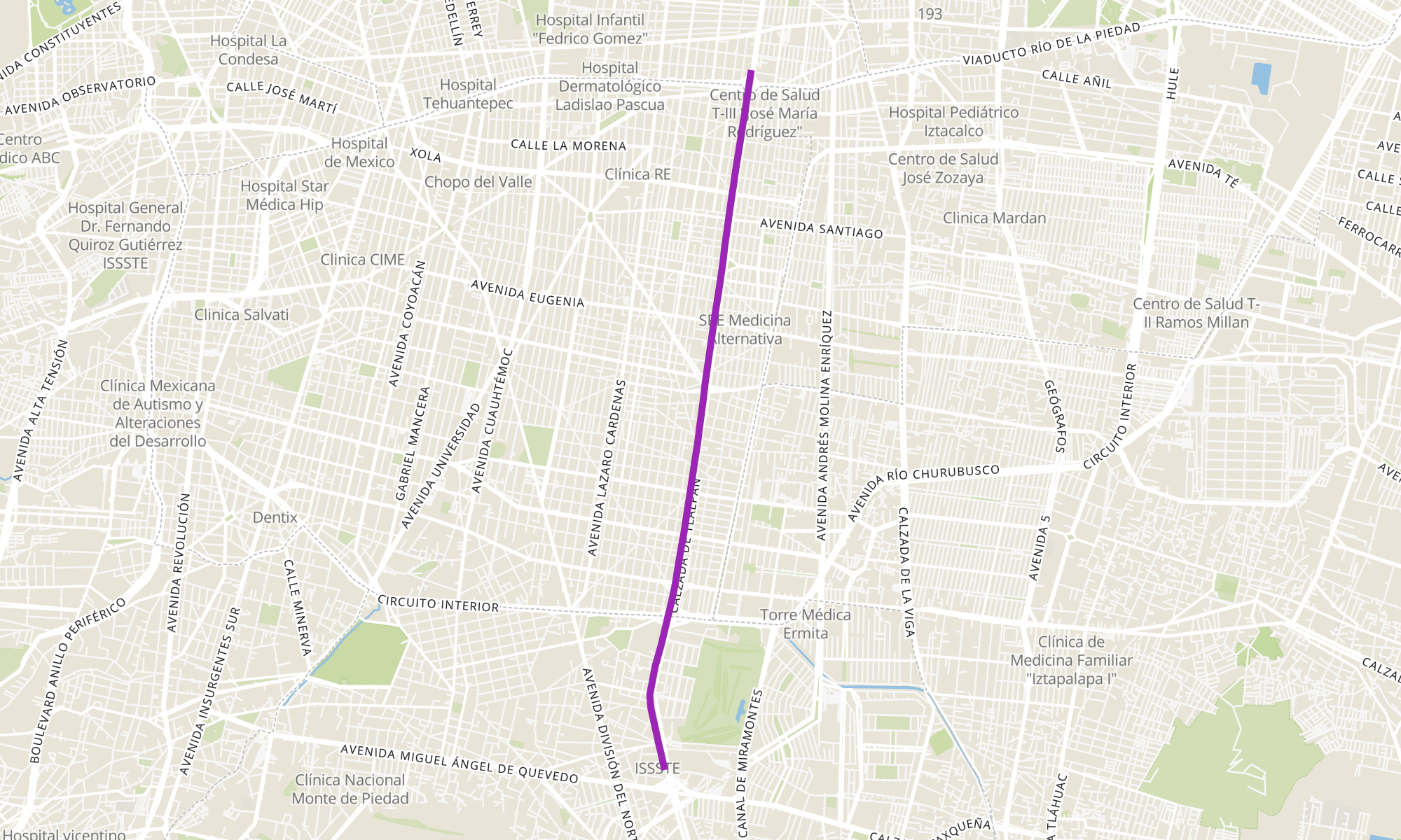Recorrido de la línea 17L: Tlalpan - Miguel Ángel de Quevedo