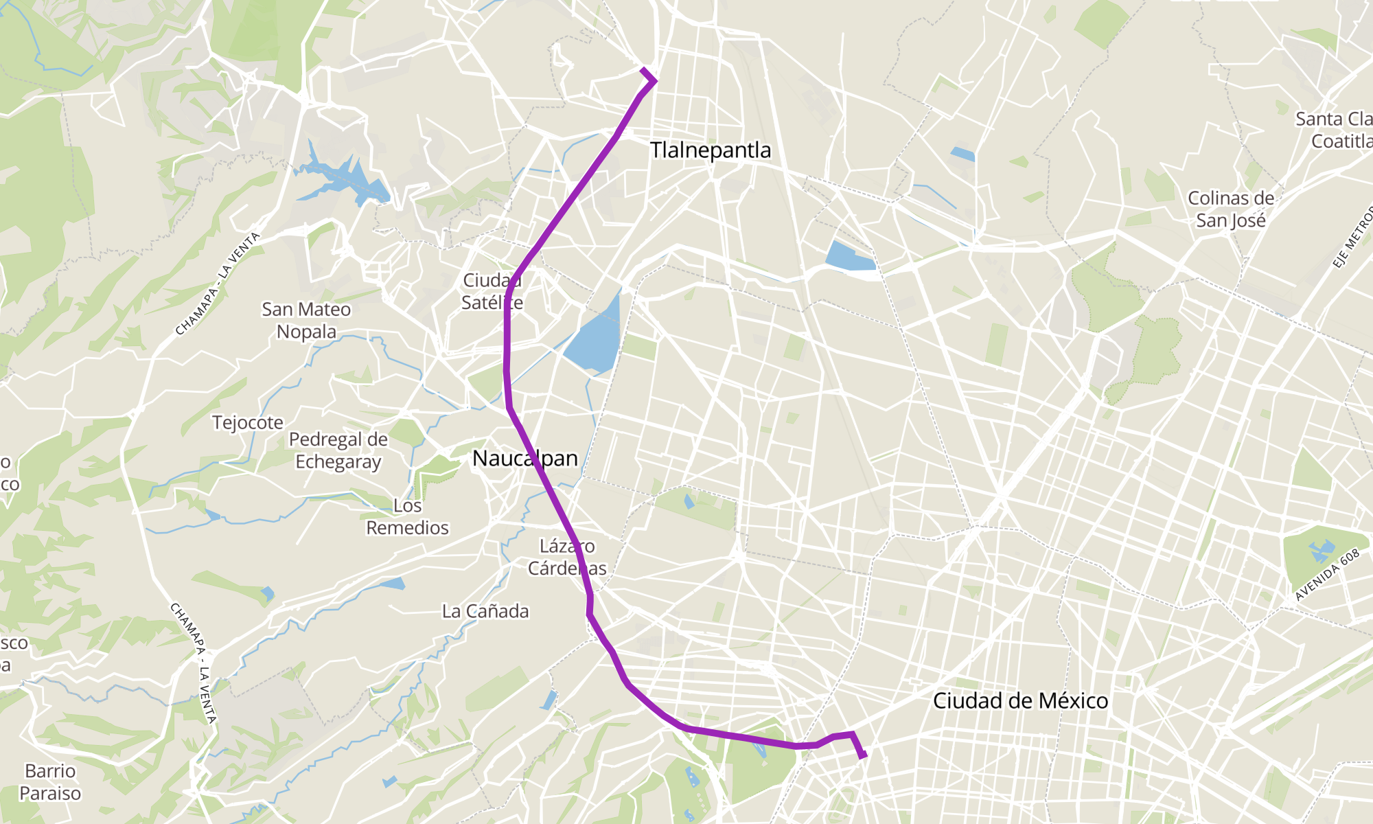 Recorrido de la línea 18A: Chapultepec - Valle Dorado