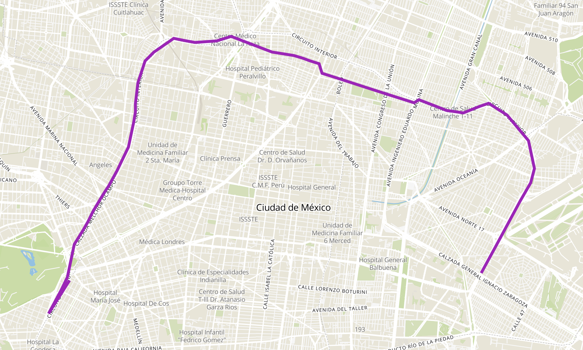 | Bulevar Puerto Aéreo BASE | Circuito Interior - Metro Chapultepec |