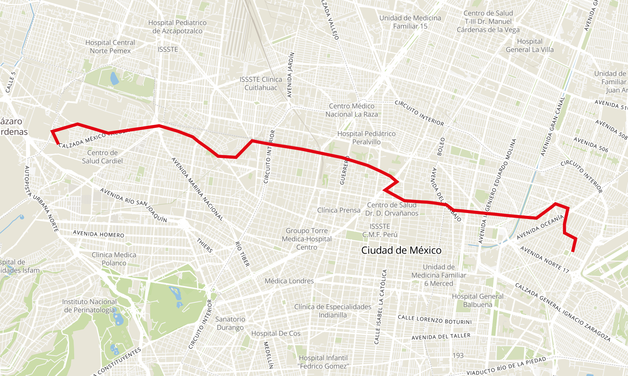 | Oriente 175 - Norte 252 | Cetram Metro Cuatro Caminos |