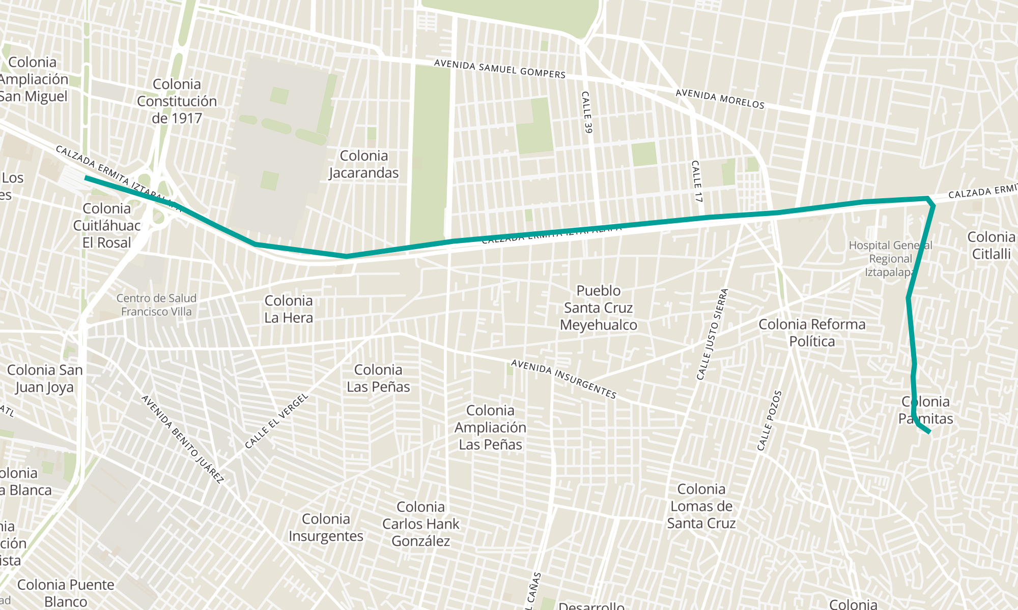 | C. C. Palmitas - Manuel Acuña y Nueces | C. C. Metro Constitución de 1917 - Cetram Constitución de 1917 Anden B |