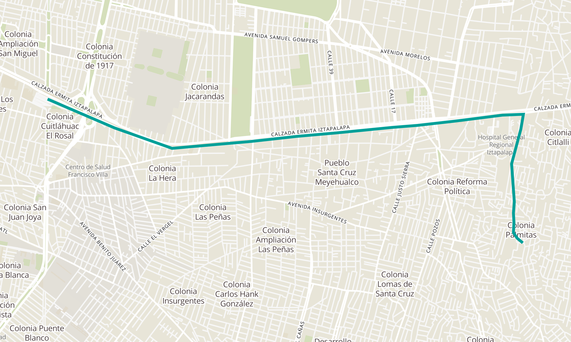 | C. C. Metro Constitución de 1917 - Cetram Constitución de 1917 Anden B | C. C. Palmitas - Manuel Acuña y Jacarandas |
