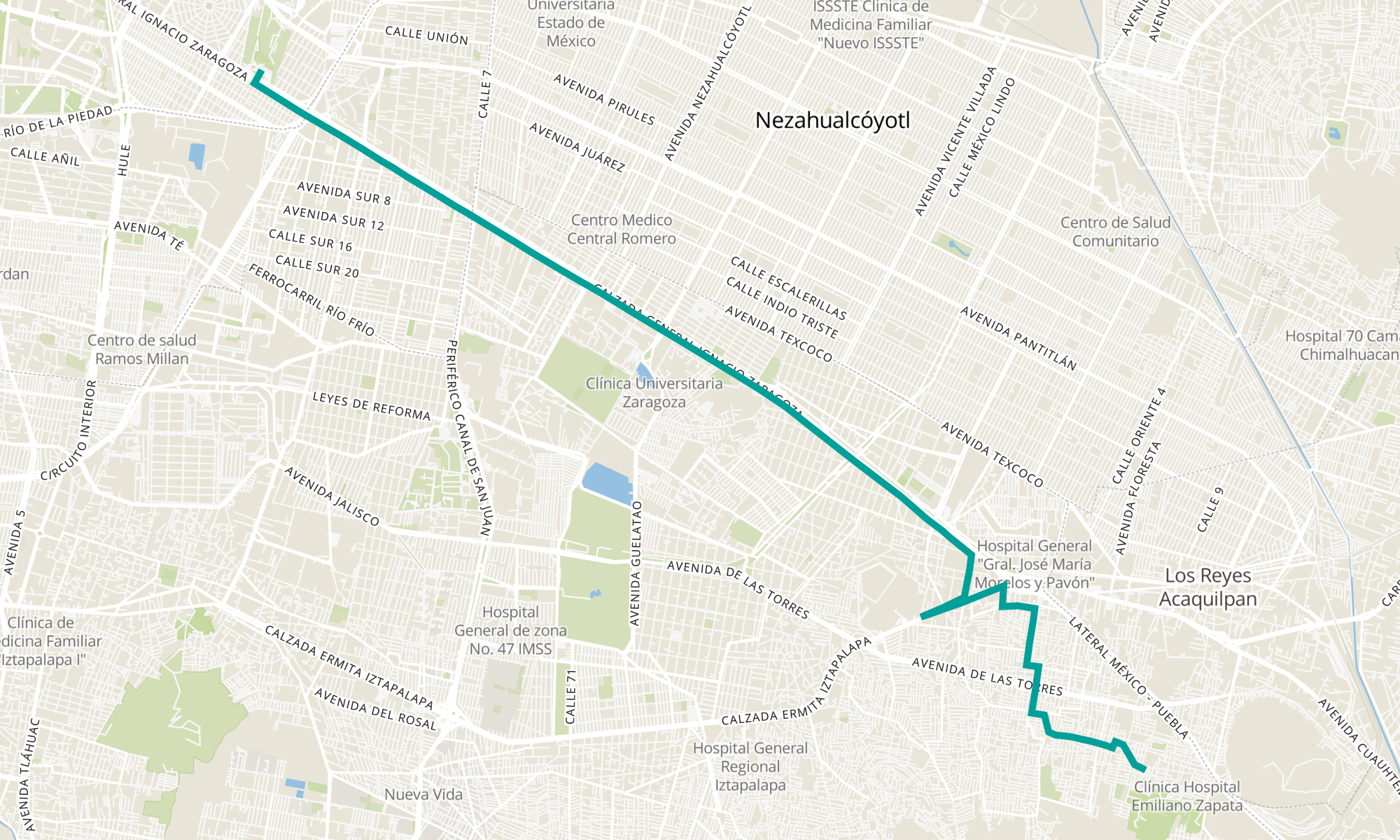 Sentido: Cetram Metro Zaragoza y Metro Tepalcates ‎→ Cordoba (59 paradas)