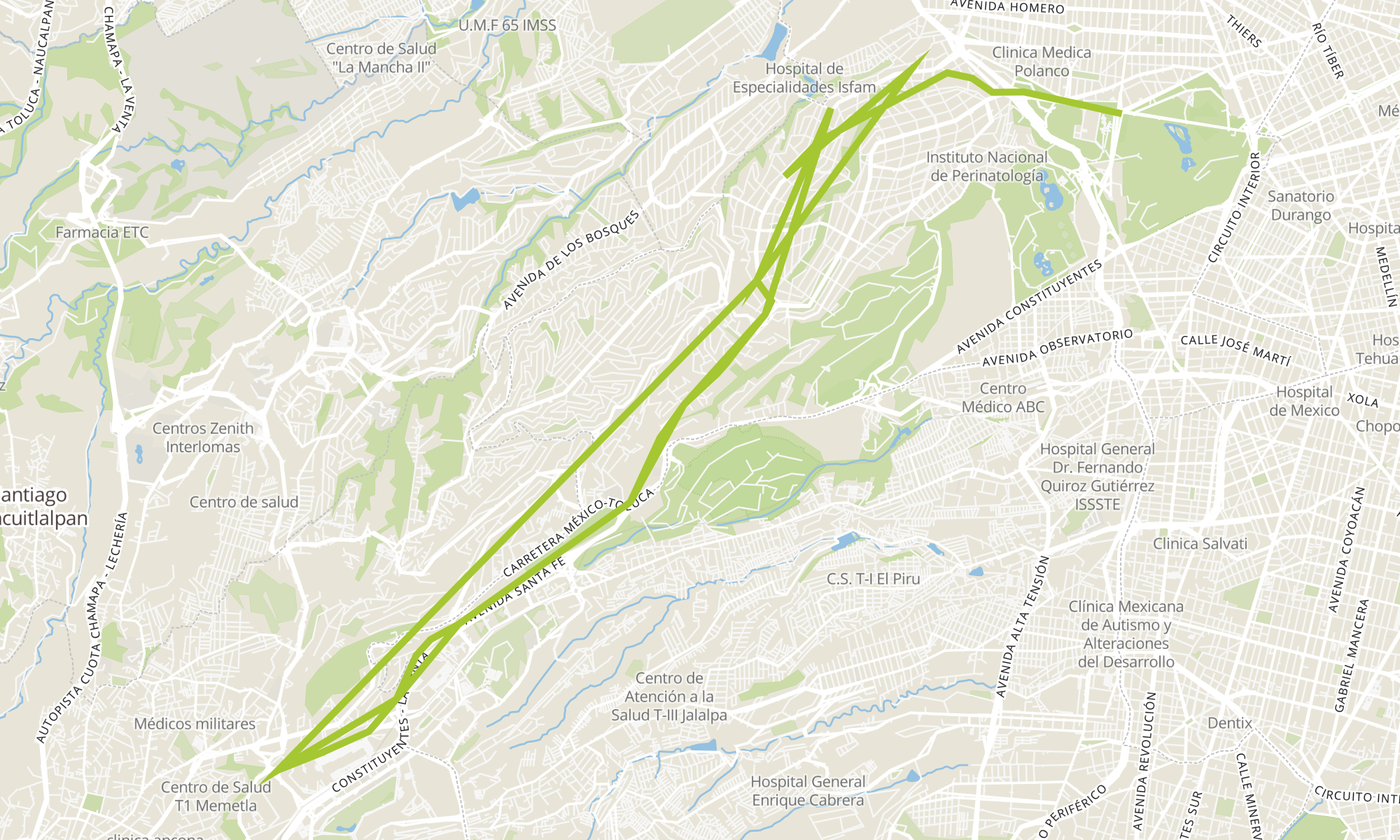 | Paseo de la Reforma - Ruben Dario y Calz. Chivatito | C. C. Centro Comercial Santa Fe - Av. Vasco de Quiroga y Juan Salvador Agraz |