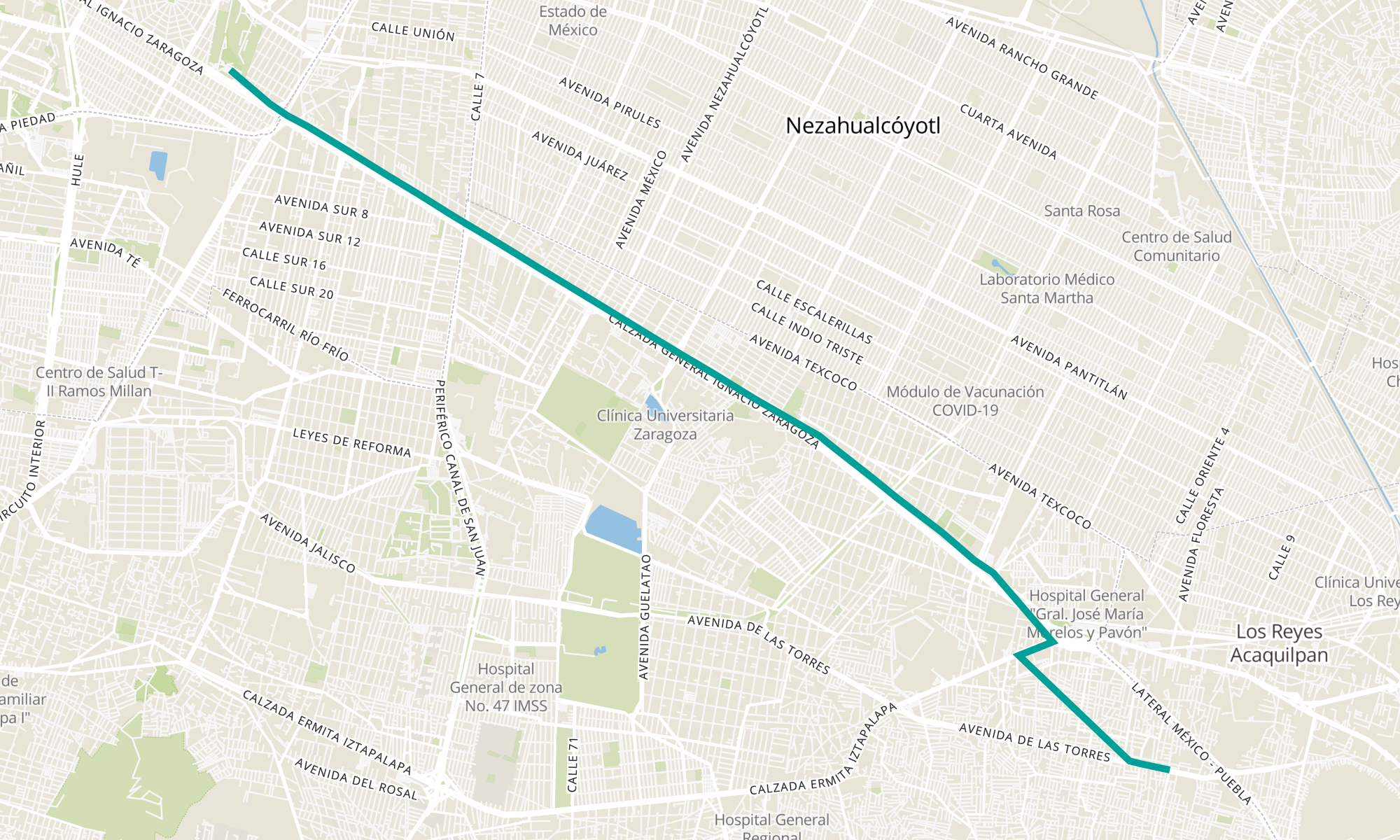 | Eje 6 Sur Av. de las Torres - Lázaro Cardenas | Cetram Metro Zaragoza y Metro Tepalcates |