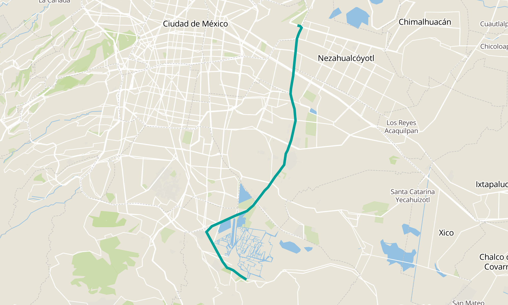 | C. C. Xochimilco Bosque de Nativitas por Miramontes - Zacapa y Camino a Nativitas | C. C. Alameda Oriente - Av. Bordo de Xochiaca y Xiutetelco |