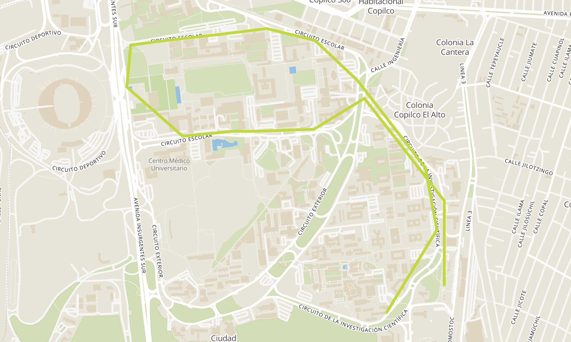 Recorrido de la línea PUMA1: Base Metro Universidad