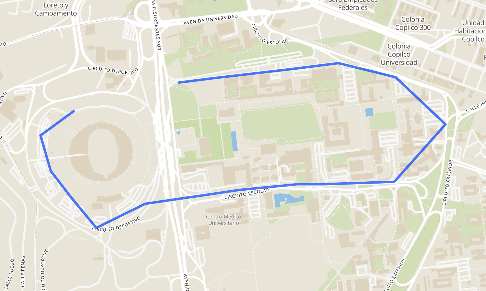 Recorrido de la línea PUMA7: Base Estadio Olímpico