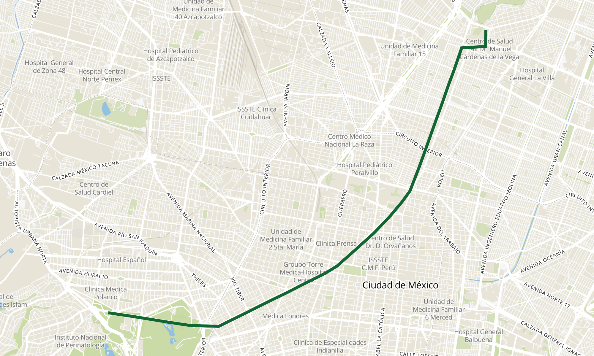 Recorrido de la línea 7: Campo Marte - Hospital Infantil