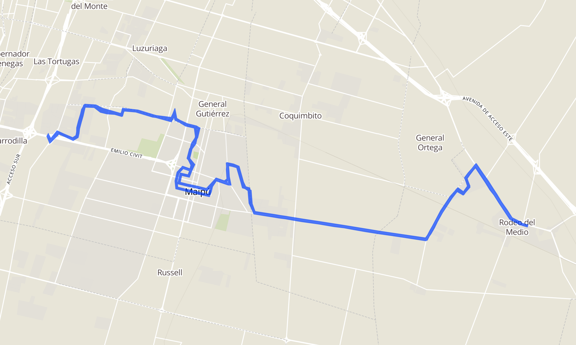 | Gral San Martín y Bandera de los Andes (Maipú, Mendoza) | Rufino Ortega y Bandera de los Andes (Maipú, Mendoza) |