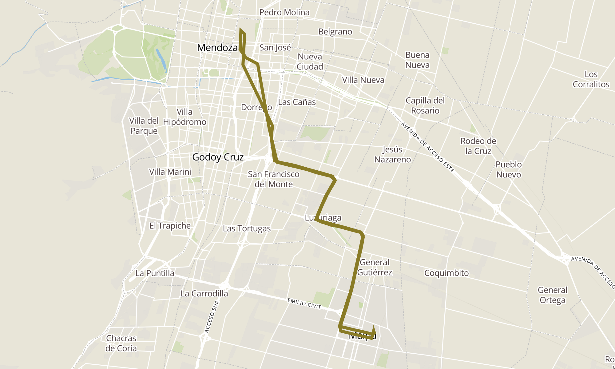 | Presidente Jua Domingo Perón y Godoy Cruz (Maipú, Mendoza) | Presidente Jua Domingo Perón y Ejército Libertador (Maipú, Mendoza) |