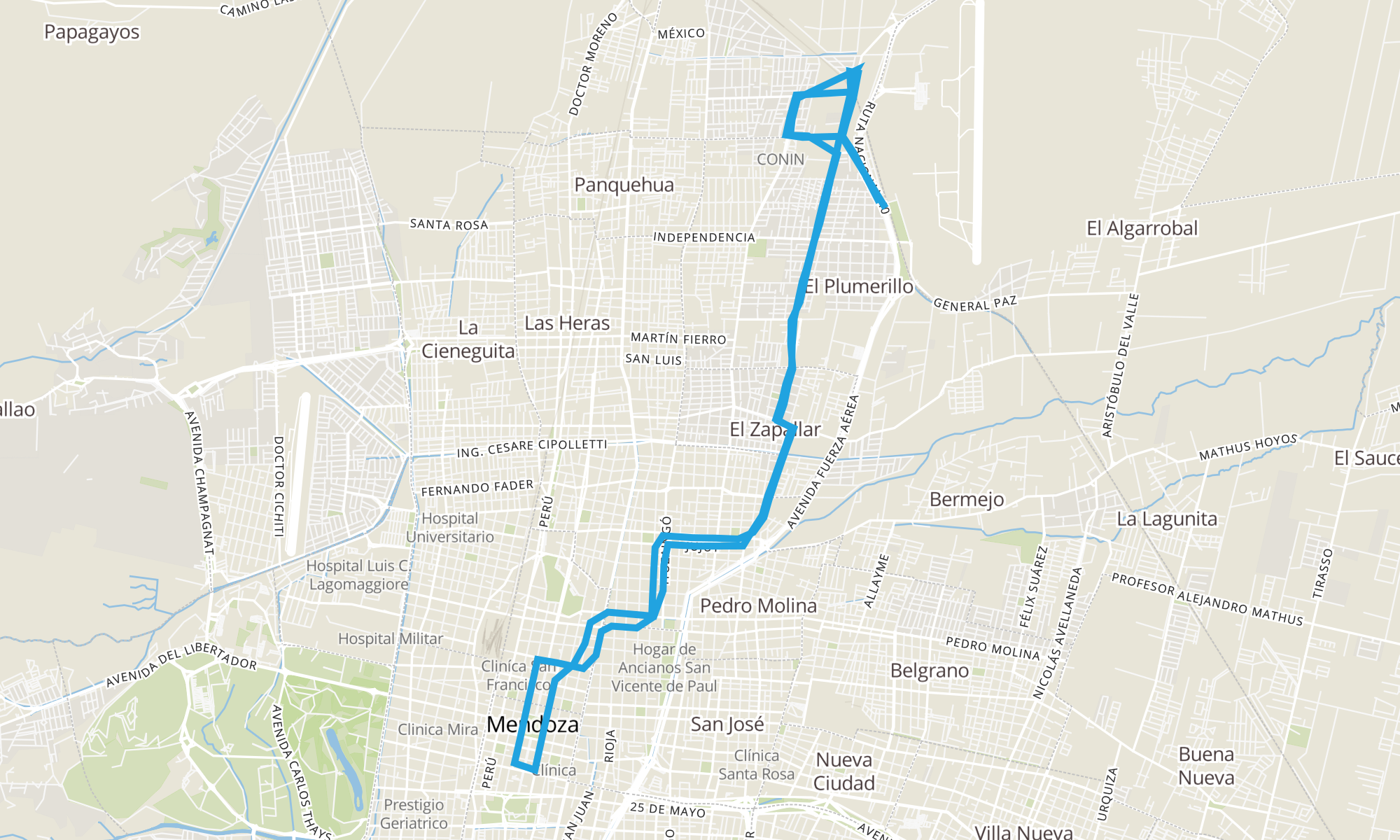 Recorrido de la línea 640: B° Dorrego -Centro por Hospital Carrillo
