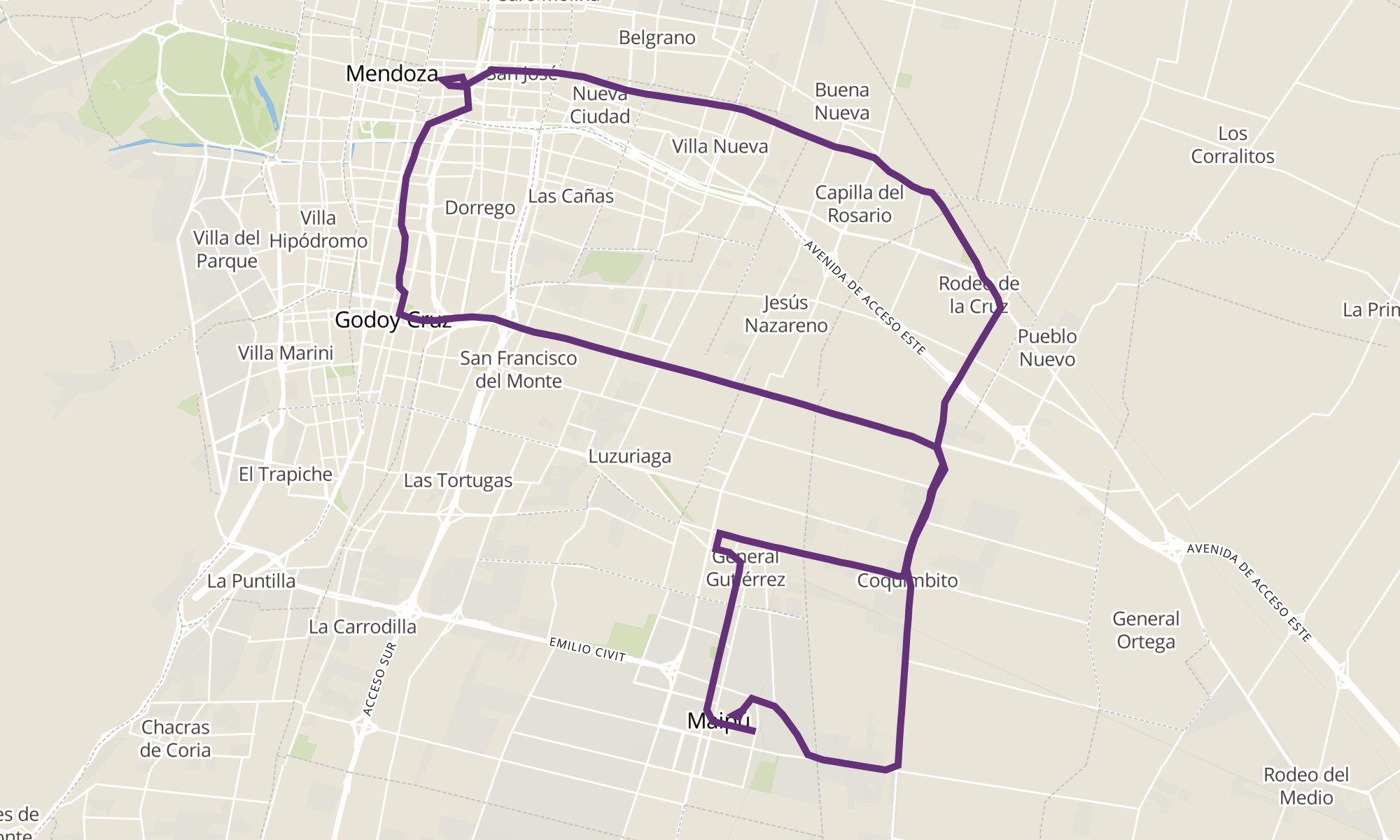 ¿A qué hora pasa? Descarga la app desde aquí para conocer cuándo viene el recorrido MAIPÚ – R. PEÑA - MENDOZA - RODEO DE LA CRUZ - GUTIÉRREZ de la línea 810, su frecuencia y horarios en tiempo real gracias a la comunidad de usuarios.