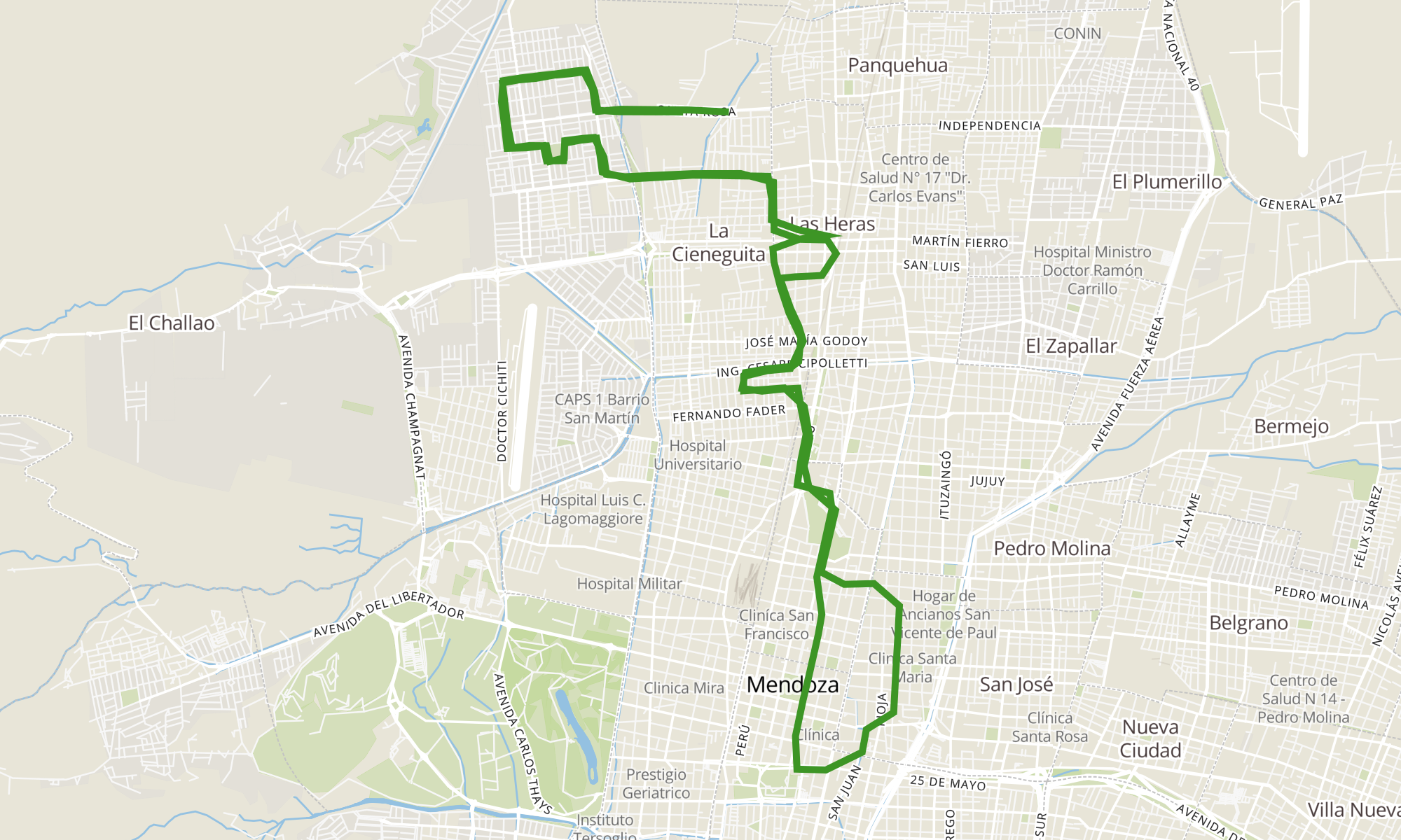 Sentido: 17 de Ocutbre y Esquiú (Las Heras, Mendoza) ‎→ Santa Rosa y Colón (Las Heras, Mendoza) (120 paradas)