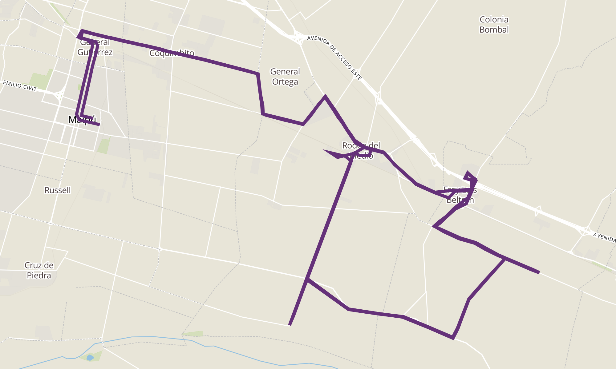 | Pres. Juan Domingo Perón y T. Godoy Cruz | San Martín y 5 de Abril (Maipú, Mendoza) |