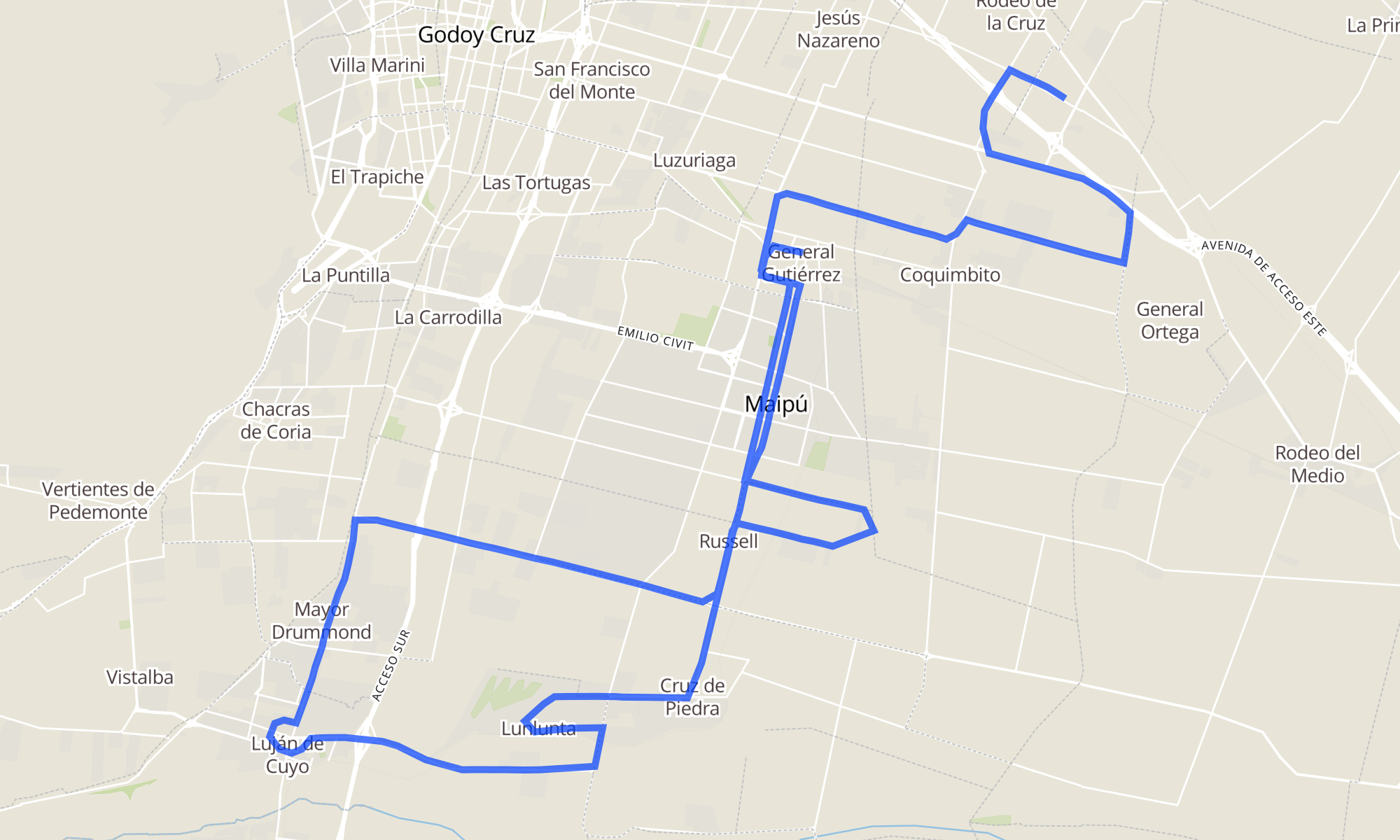 | General Ferrer y Elpidio González (Guaymallén, Mendoza) | Ozamis y Uriburu (Maipú, Mendoza) |