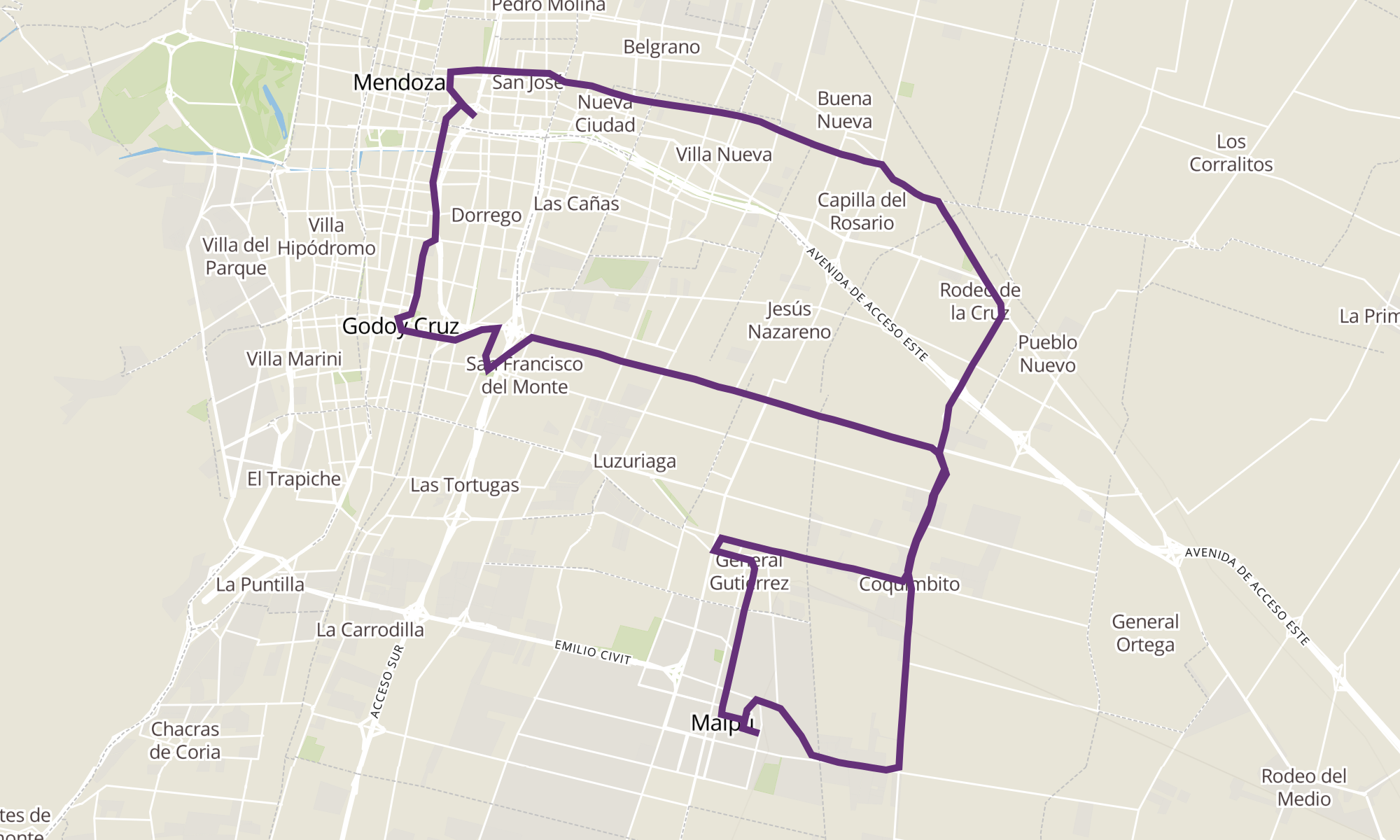 ¿A qué hora pasa? Descarga la app desde aquí para conocer cuándo viene el recorrido GUTIÉRREZ – RODEO DE LA CRUZ - MENDOZA - R. PEÑA – T.SOSA de la línea 812, su frecuencia y horarios en tiempo real gracias a la comunidad de usuarios.