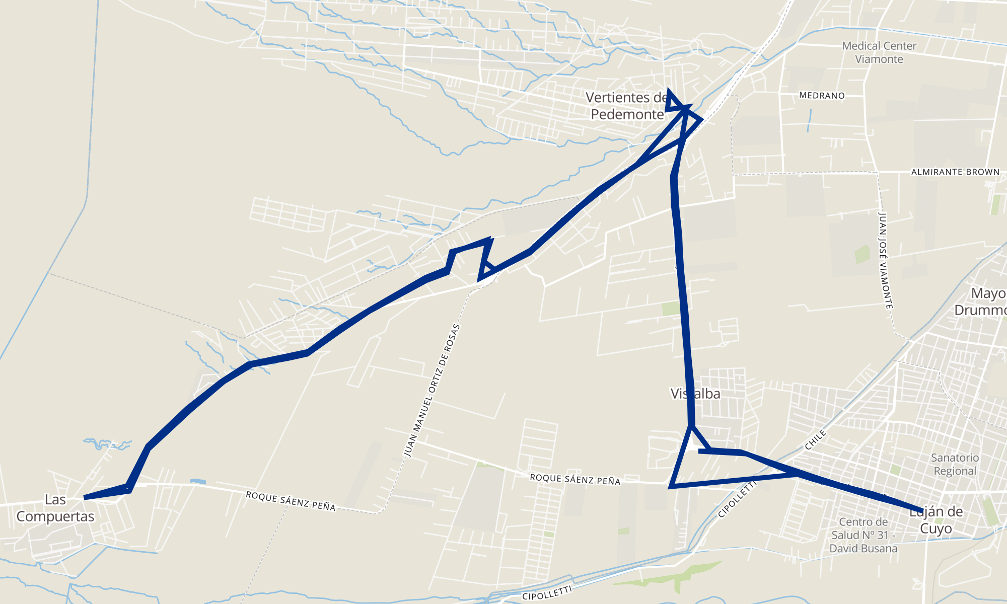 | Sáenz Peña y Embalse Potrerillos (Luján de Cuyo, Mendoza) | Sáenz Peña y Costa Canal (Luján de Cuyo, Mendoza) |