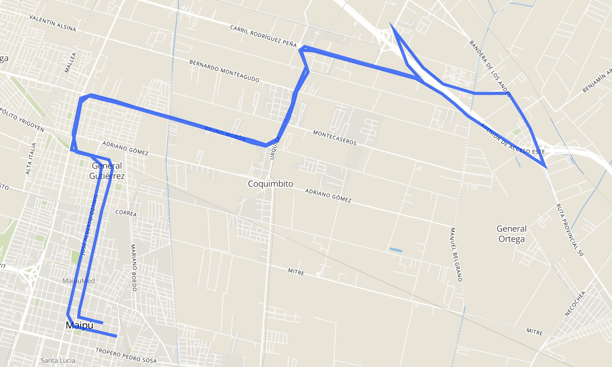 | Pres. Juan Domingo Perón y T. Godoy Cruz | San Martín y 5 de Abril (Maipú, Mendoza) |
