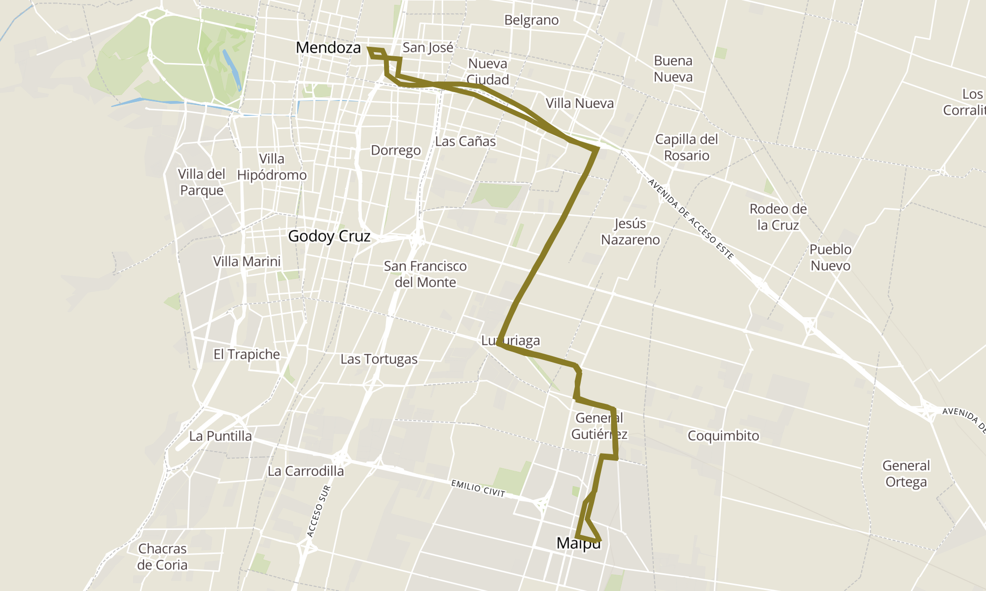 | Presidente Jua Domingo Perón y Godoy Cruz (Maipú, Mendoza) | Presidente Jua Domingo Perón y Ejército Libertador (Maipú, Mendoza) |