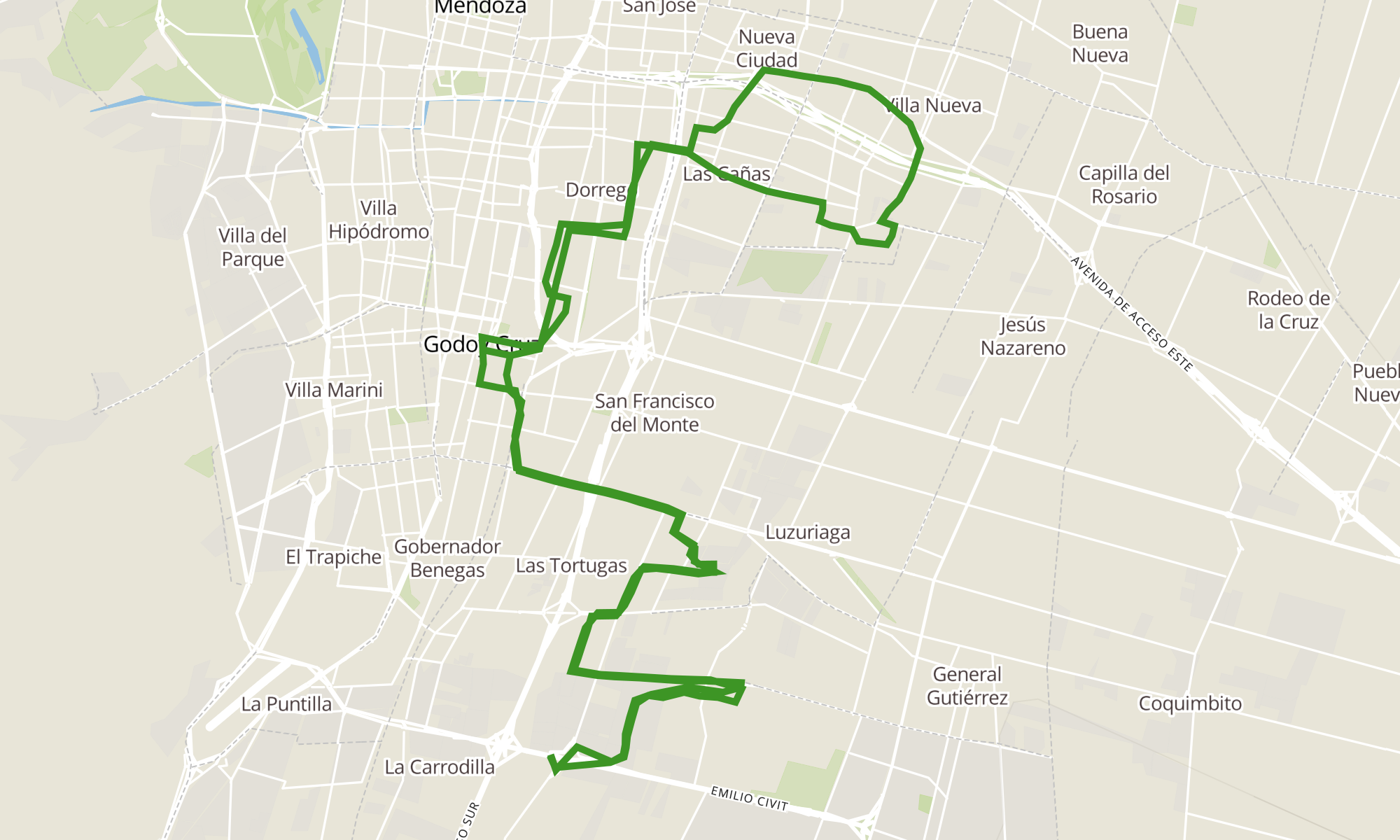 Sentido: Emilio Civit y Juan José Paso (Luján de Cuyo, Mendoza) ‎→ Emilio Civit y Juan José Paso (Luján de Cuyo, Mendoza) (185 paradas)