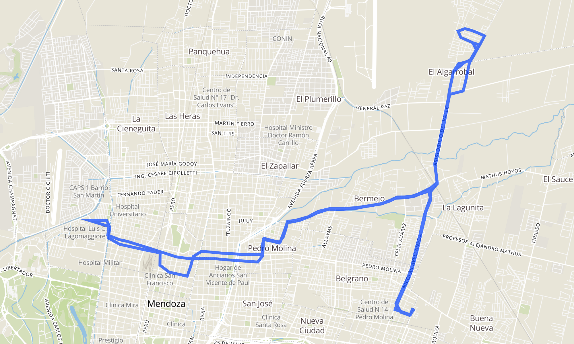 Recorrido de la línea 546: Algarrobal-Bermejo- Centro - Hospital